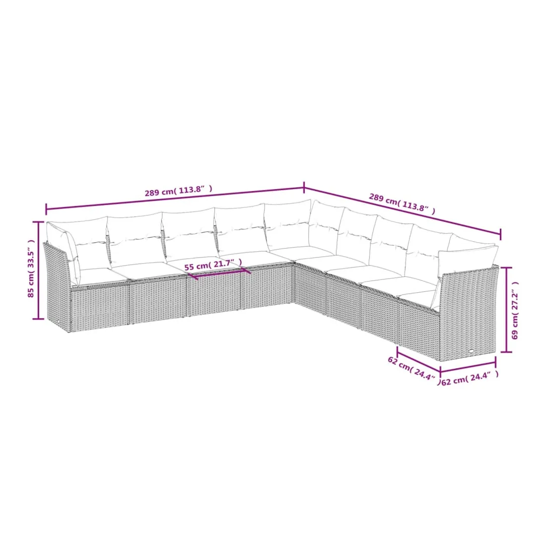 - 9 x coussin d'assise avec housse amovible et lavable