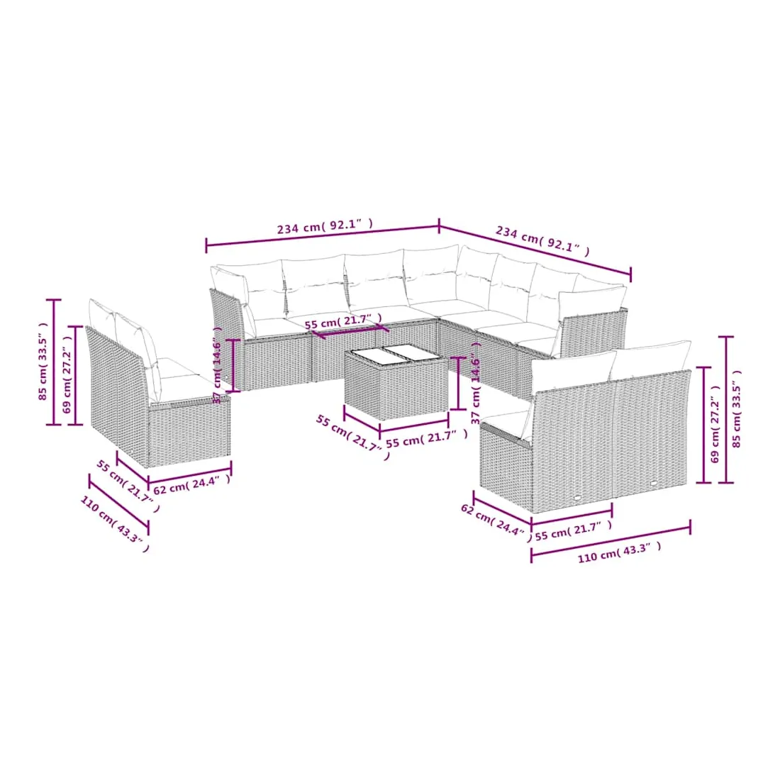 Cet ensemble de canapés de jardin est le complément parfait de votre arrière-cour, terrasse ou patio, offrant un espace confortable et accueillant pour discuter avec la famille et les amis ou simplement se détendre et profiter de l'extérieur. Matériau durable : la résine tressée, également connue sous le nom de poly rotin, est un matériau synthétique solide et nécessitant peu d'entretien qui ressemble au rotin naturel. Il est léger, facile à nettoyer et couramment utilisé pour les meubles d'extérieur en raison de sa durabilité et de ses propriétés de résistance aux intempéries.Expérience d'assise confortable : ce mobilier d'extérieur, doté de coussins épais, offre une expérience d'assise confortable.Dessus en verre : le dessus de la table d'extérieur est fabriqué en verre trempé solide et durable, ce qui le rend facile à nettoyer avec un chiffon humide et ajoute une touche d'élégance à votre espace extérieur.Housse amovible et lavable : ces coussins de siège sont dotés de housses amovibles pour un lavage et un entretien faciles.Conception modulaire : cet ensemble de meubles d'extérieur a une conception modulaire, ce qui le rend complètement flexible et facile à déplacer, afin que vous puissiez créer un agencement de meubles d'extérieur personnalisé. Bon à savoir :Pour que vos meubles d'extérieur restent beaux, nous vous recommandons de les protéger avec une housse imperméable.