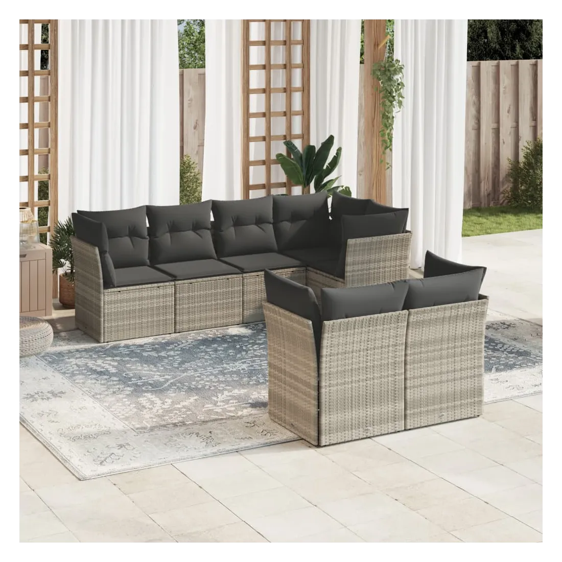 Cet ensemble de canapés de jardin est le complément parfait de votre arrière-cour, terrasse ou patio, offrant un espace confortable et accueillant pour discuter avec la famille et les amis ou simplement se détendre et profiter de l'extérieur. Matériau durable : la résine tressée, également connue sous le nom de poly rotin, est un matériau synthétique solide et nécessitant peu d'entretien qui ressemble au rotin naturel. Il est léger, facile à nettoyer et couramment utilisé pour les meubles d'extérieur en raison de sa durabilité et de ses propriétés de résistance aux intempéries.Expérience d'assise confortable : ce mobilier d'extérieur, doté de coussins épais, offre une expérience d'assise confortable.Housse amovible et lavable : ces coussins de siège sont dotés de housses amovibles pour un lavage et un entretien faciles.Conception modulaire : cet ensemble de meubles d'extérieur a une conception modulaire, ce qui le rend complètement flexible et facile à déplacer, afin que vous puissiez créer un agencement de meubles d'extérieur personnalisé. Bon à savoir :Pour que vos meubles d'extérieur restent beaux, nous vous recommandons de les protéger avec une housse imperméable.