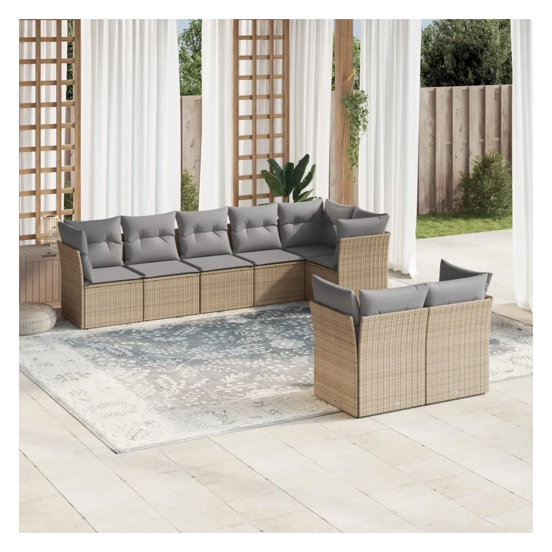Salon de jardin avec coussins 8 pcs beige résine tressée