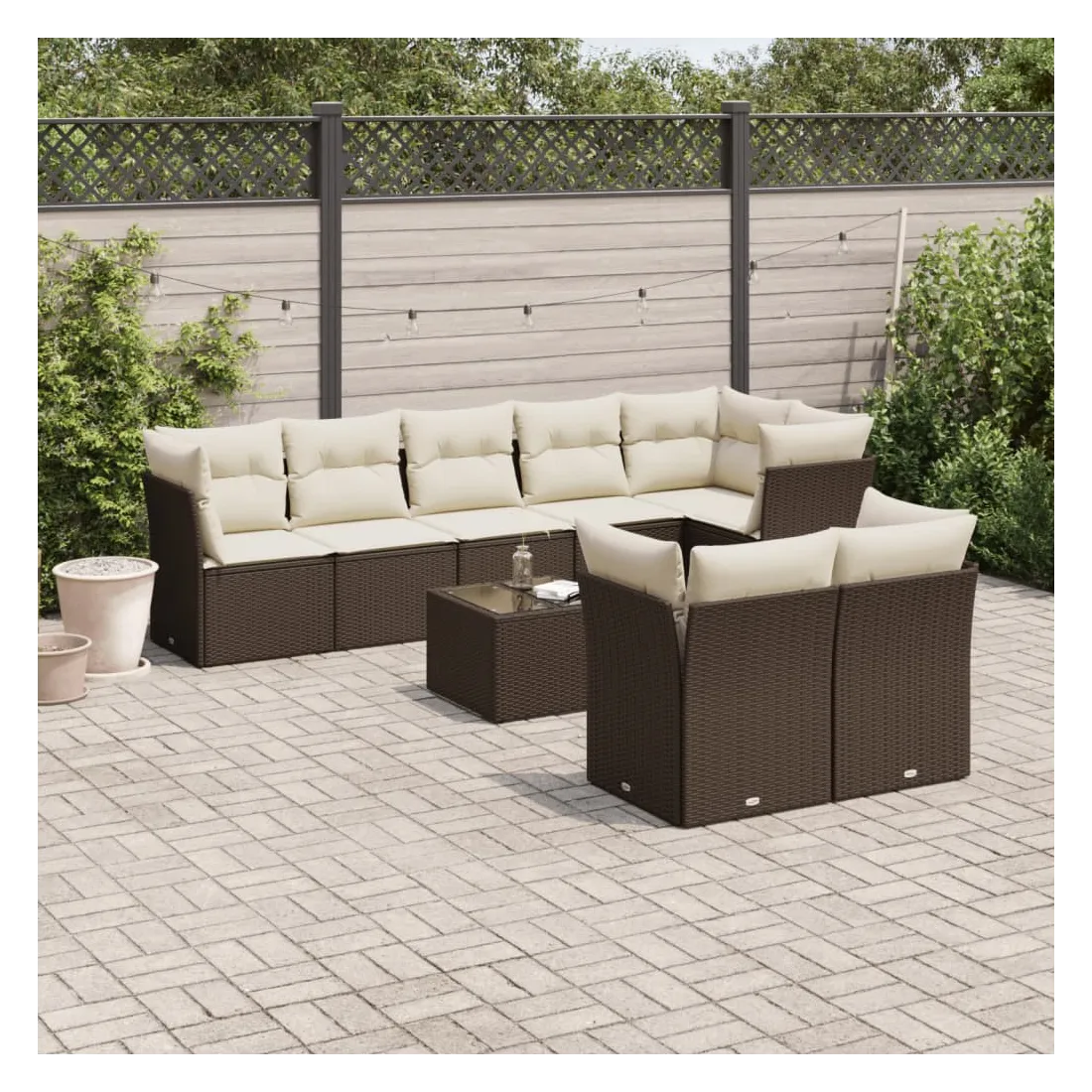 Cet ensemble de canapés de jardin est le complément parfait de votre arrière-cour, terrasse ou patio, offrant un espace confortable et accueillant pour discuter avec la famille et les amis ou simplement se détendre et profiter de l'extérieur. Matériau durable : la résine tressée, également connue sous le nom de poly rotin, est un matériau synthétique solide et nécessitant peu d'entretien qui ressemble au rotin naturel. Il est léger, facile à nettoyer et couramment utilisé pour les meubles d'extérieur en raison de sa durabilité et de ses propriétés de résistance aux intempéries.Expérience d'assise confortable : ce mobilier d'extérieur, doté de coussins épais, offre une expérience d'assise confortable.Dessus en verre : le dessus de la table d'extérieur est fabriqué en verre trempé solide et durable, ce qui le rend facile à nettoyer avec un chiffon humide et ajoute une touche d'élégance à votre espace extérieur.Housse amovible et lavable : ces coussins de siège sont dotés de housses amovibles pour un lavage et un entretien faciles.Conception modulaire : cet ensemble de meubles d'extérieur a une conception modulaire, ce qui le rend complètement flexible et facile à déplacer, afin que vous puissiez créer un agencement de meubles d'extérieur personnalisé. Bon à savoir :Pour que vos meubles d'extérieur restent beaux, nous vous recommandons de les protéger avec une housse imperméable.