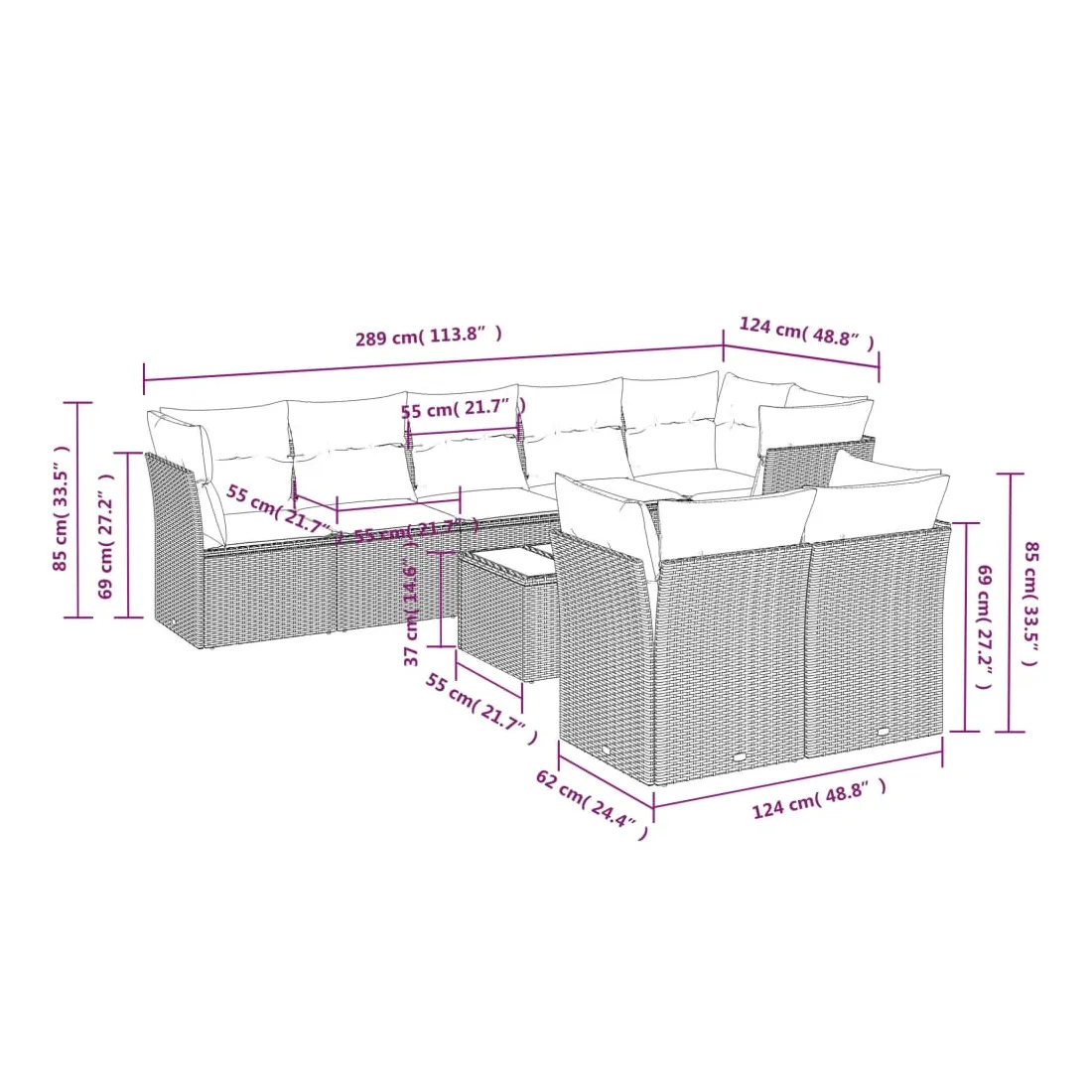 - 8 x coussin d'assise avec housse amovible et lavable