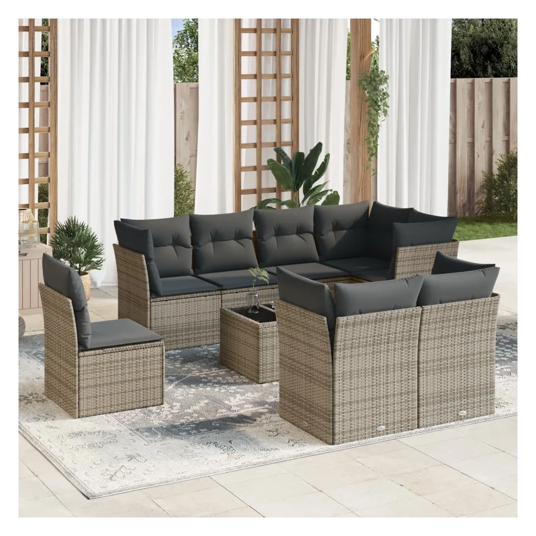 Cet ensemble de canapés de jardin est le complément parfait de votre arrière-cour, terrasse ou patio, offrant un espace confortable et accueillant pour discuter avec la famille et les amis ou simplement se détendre et profiter de l'extérieur. Matériau durable : la résine tressée, également connue sous le nom de poly rotin, est un matériau synthétique solide et nécessitant peu d'entretien qui ressemble au rotin naturel. Il est léger, facile à nettoyer et couramment utilisé pour les meubles d'extérieur en raison de sa durabilité et de ses propriétés de résistance aux intempéries.Expérience d'assise confortable : ce mobilier d'extérieur, doté de coussins épais, offre une expérience d'assise confortable.Dessus en verre : le dessus de la table d'extérieur est fabriqué en verre trempé solide et durable, ce qui le rend facile à nettoyer avec un chiffon humide et ajoute une touche d'élégance à votre espace extérieur.Housse amovible et lavable : ces coussins de siège sont dotés de housses amovibles pour un lavage et un entretien faciles.Conception modulaire : cet ensemble de meubles d'extérieur a une conception modulaire, ce qui le rend complètement flexible et facile à déplacer, afin que vous puissiez créer un agencement de meubles d'extérieur personnalisé. Bon à savoir :Pour que vos meubles d'extérieur restent beaux, nous vous recommandons de les protéger avec une housse imperméable.