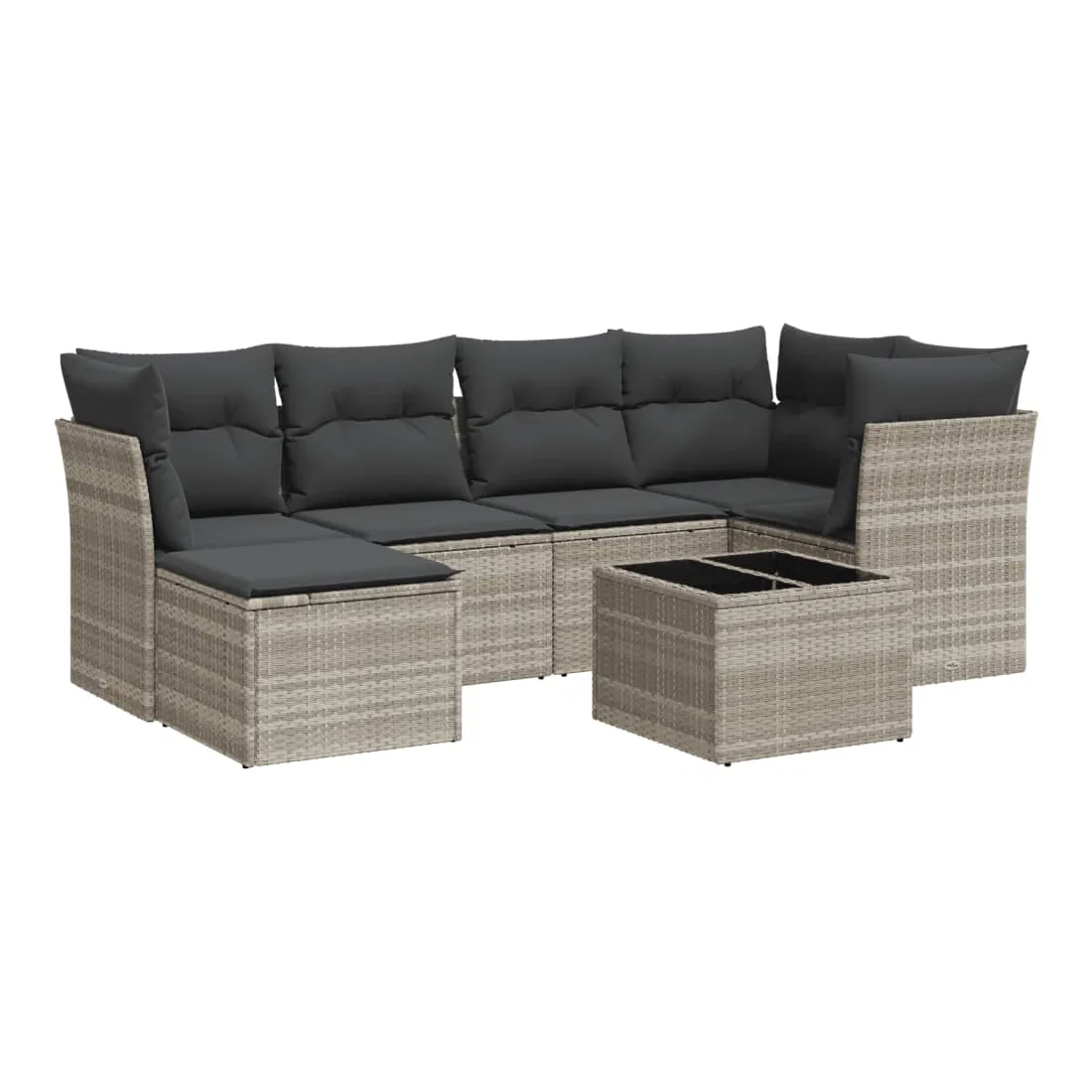Cet ensemble de canapés de jardin est le complément parfait de votre arrière-cour, terrasse ou patio, offrant un espace confortable et accueillant pour discuter avec la famille et les amis ou simplement se détendre et profiter de l'extérieur. Matériau durable : la résine tressée, également connue sous le nom de poly rotin, est un matériau synthétique solide et nécessitant peu d'entretien qui ressemble au rotin naturel. Il est léger, facile à nettoyer et couramment utilisé pour les meubles d'extérieur en raison de sa durabilité et de ses propriétés de résistance aux intempéries.Expérience d'assise confortable : ce mobilier d'extérieur, doté de coussins épais, offre une expérience d'assise confortable.Dessus en verre : le dessus de la table d'extérieur est fabriqué en verre trempé solide et durable, ce qui le rend facile à nettoyer avec un chiffon humide et ajoute une touche d'élégance à votre espace extérieur.Housse amovible et lavable : ces coussins de siège sont dotés de housses amovibles pour un lavage et un entretien faciles.Conception modulaire : cet ensemble de meubles d'extérieur a une conception modulaire, ce qui le rend complètement flexible et facile à déplacer, afin que vous puissiez créer un agencement de meubles d'extérieur personnalisé. Bon à savoir :Pour que vos meubles d'extérieur restent beaux, nous vous recommandons de les protéger avec une housse imperméable.