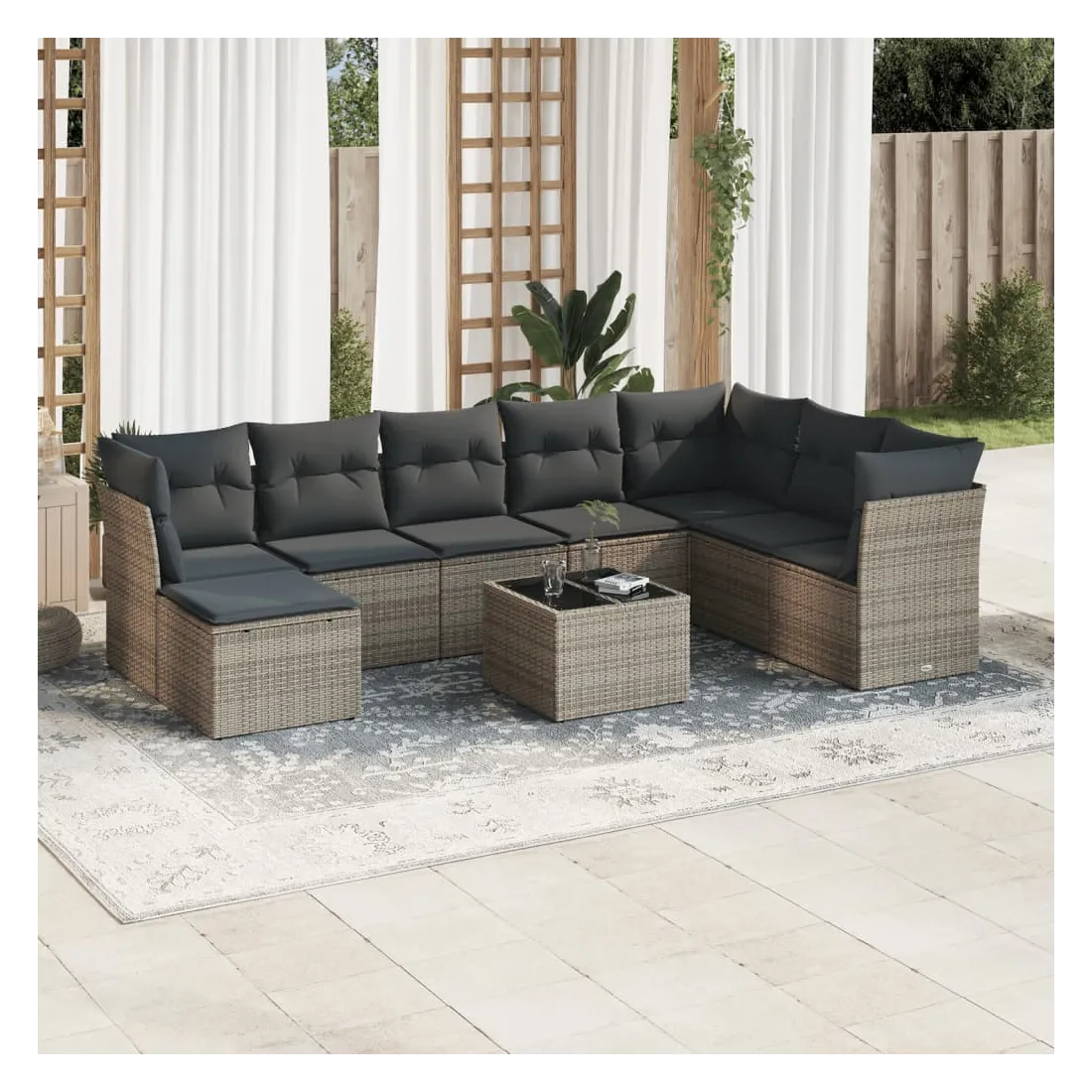 Cet ensemble de canapés de jardin est le complément parfait de votre arrière-cour, terrasse ou patio, offrant un espace confortable et accueillant pour discuter avec la famille et les amis ou simplement se détendre et profiter de l'extérieur. Matériau durable : la résine tressée, également connue sous le nom de poly rotin, est un matériau synthétique solide et nécessitant peu d'entretien qui ressemble au rotin naturel. Il est léger, facile à nettoyer et couramment utilisé pour les meubles d'extérieur en raison de sa durabilité et de ses propriétés de résistance aux intempéries.Expérience d'assise confortable : ce mobilier d'extérieur, doté de coussins épais, offre une expérience d'assise confortable.Dessus en verre : le dessus de la table d'extérieur est fabriqué en verre trempé solide et durable, ce qui le rend facile à nettoyer avec un chiffon humide et ajoute une touche d'élégance à votre espace extérieur.Housse amovible et lavable : ces coussins de siège sont dotés de housses amovibles pour un lavage et un entretien faciles.Conception modulaire : cet ensemble de meubles d'extérieur a une conception modulaire, ce qui le rend complètement flexible et facile à déplacer, afin que vous puissiez créer un agencement de meubles d'extérieur personnalisé. Bon à savoir :Pour que vos meubles d'extérieur restent beaux, nous vous recommandons de les protéger avec une housse imperméable.