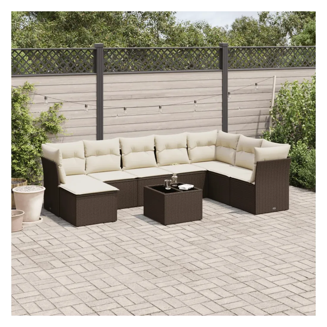 Cet ensemble de canapés de jardin est le complément parfait de votre arrière-cour, terrasse ou patio, offrant un espace confortable et accueillant pour discuter avec la famille et les amis ou simplement se détendre et profiter de l'extérieur. Matériau durable : la résine tressée, également connue sous le nom de poly rotin, est un matériau synthétique solide et nécessitant peu d'entretien qui ressemble au rotin naturel. Il est léger, facile à nettoyer et couramment utilisé pour les meubles d'extérieur en raison de sa durabilité et de ses propriétés de résistance aux intempéries.Expérience d'assise confortable : ce mobilier d'extérieur, doté de coussins épais, offre une expérience d'assise confortable.Dessus en verre : le dessus de la table d'extérieur est fabriqué en verre trempé solide et durable, ce qui le rend facile à nettoyer avec un chiffon humide et ajoute une touche d'élégance à votre espace extérieur.Housse amovible et lavable : ces coussins de siège sont dotés de housses amovibles pour un lavage et un entretien faciles.Conception modulaire : cet ensemble de meubles d'extérieur a une conception modulaire, ce qui le rend complètement flexible et facile à déplacer, afin que vous puissiez créer un agencement de meubles d'extérieur personnalisé. Bon à savoir :Pour que vos meubles d'extérieur restent beaux, nous vous recommandons de les protéger avec une housse imperméable.