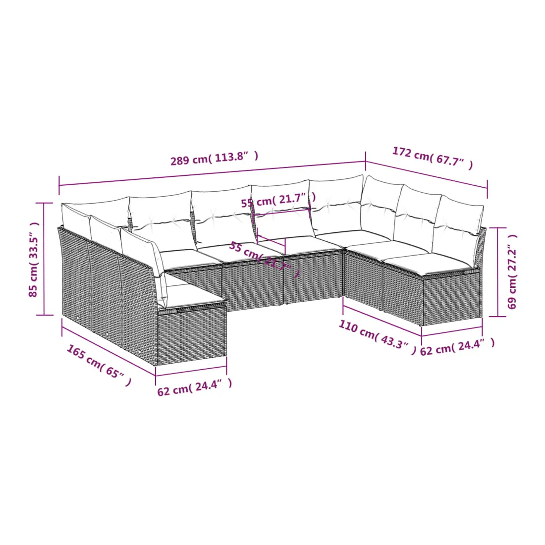 - 9 x coussin d'assise avec housse amovible et lavable