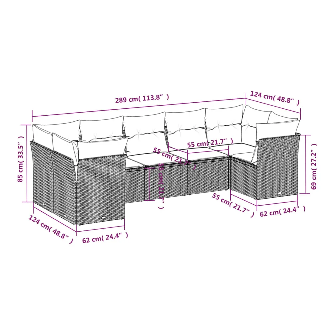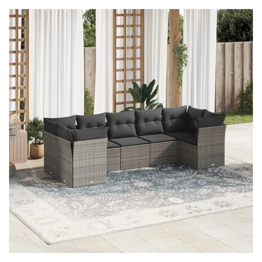 Cet ensemble de canapés de jardin est le complément parfait de votre arrière-cour, terrasse ou patio, offrant un espace confortable et accueillant pour discuter avec la famille et les amis ou simplement se détendre et profiter de l'extérieur. Matériau durable : la résine tressée, également connue sous le nom de poly rotin, est un matériau synthétique solide et nécessitant peu d'entretien qui ressemble au rotin naturel. Il est léger, facile à nettoyer et couramment utilisé pour les meubles d'extérieur en raison de sa durabilité et de ses propriétés de résistance aux intempéries.Expérience d'assise confortable : ce mobilier d'extérieur, doté de coussins épais, offre une expérience d'assise confortable.Housse amovible et lavable : ces coussins de siège sont dotés de housses amovibles pour un lavage et un entretien faciles.Conception modulaire : cet ensemble de meubles d'extérieur a une conception modulaire, ce qui le rend complètement flexible et facile à déplacer, afin que vous puissiez créer un agencement de meubles d'extérieur personnalisé. Bon à savoir :Pour que vos meubles d'extérieur restent beaux, nous vous recommandons de les protéger avec une housse imperméable.