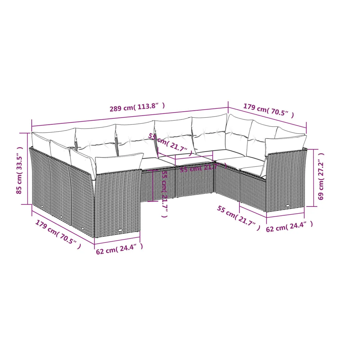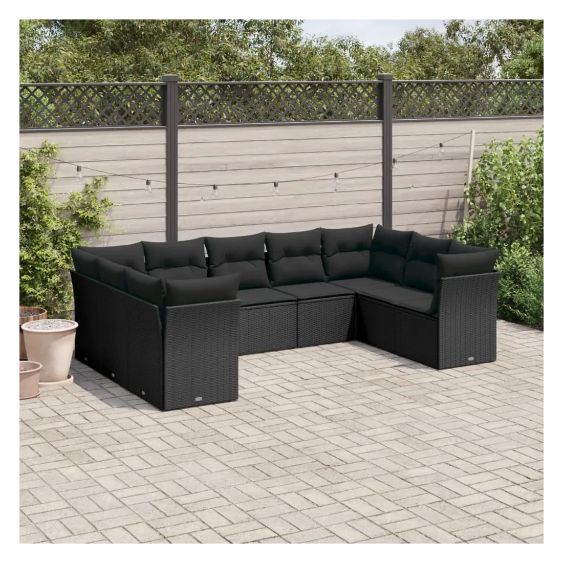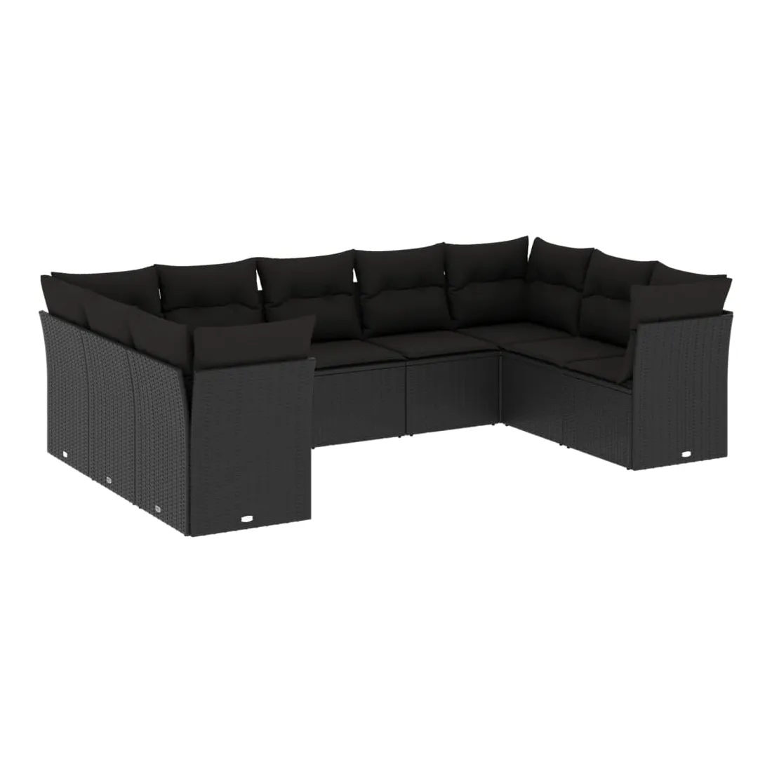 Salon de jardin 9 pcs avec coussins noir résine tressée