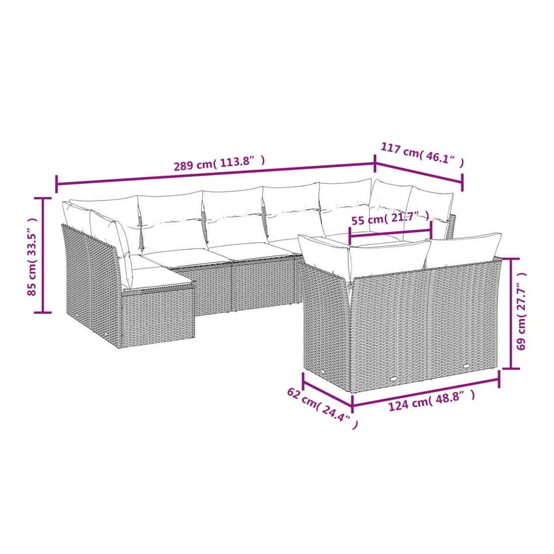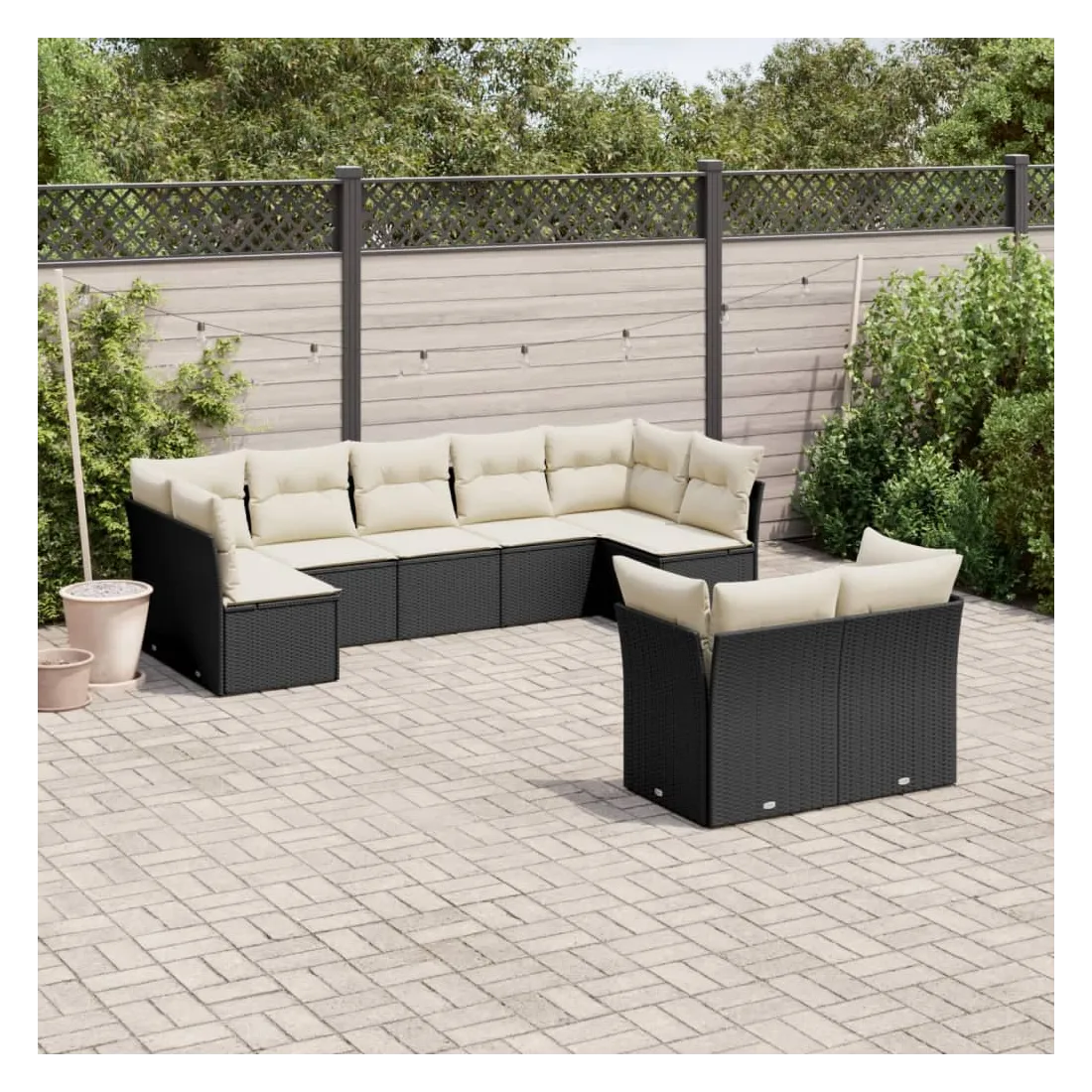 Salon de jardin 9 pcs avec coussins noir résine tressée