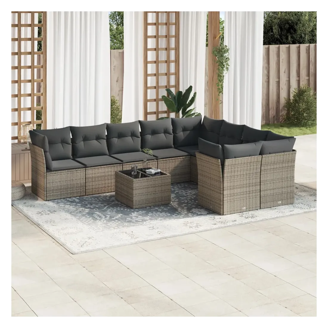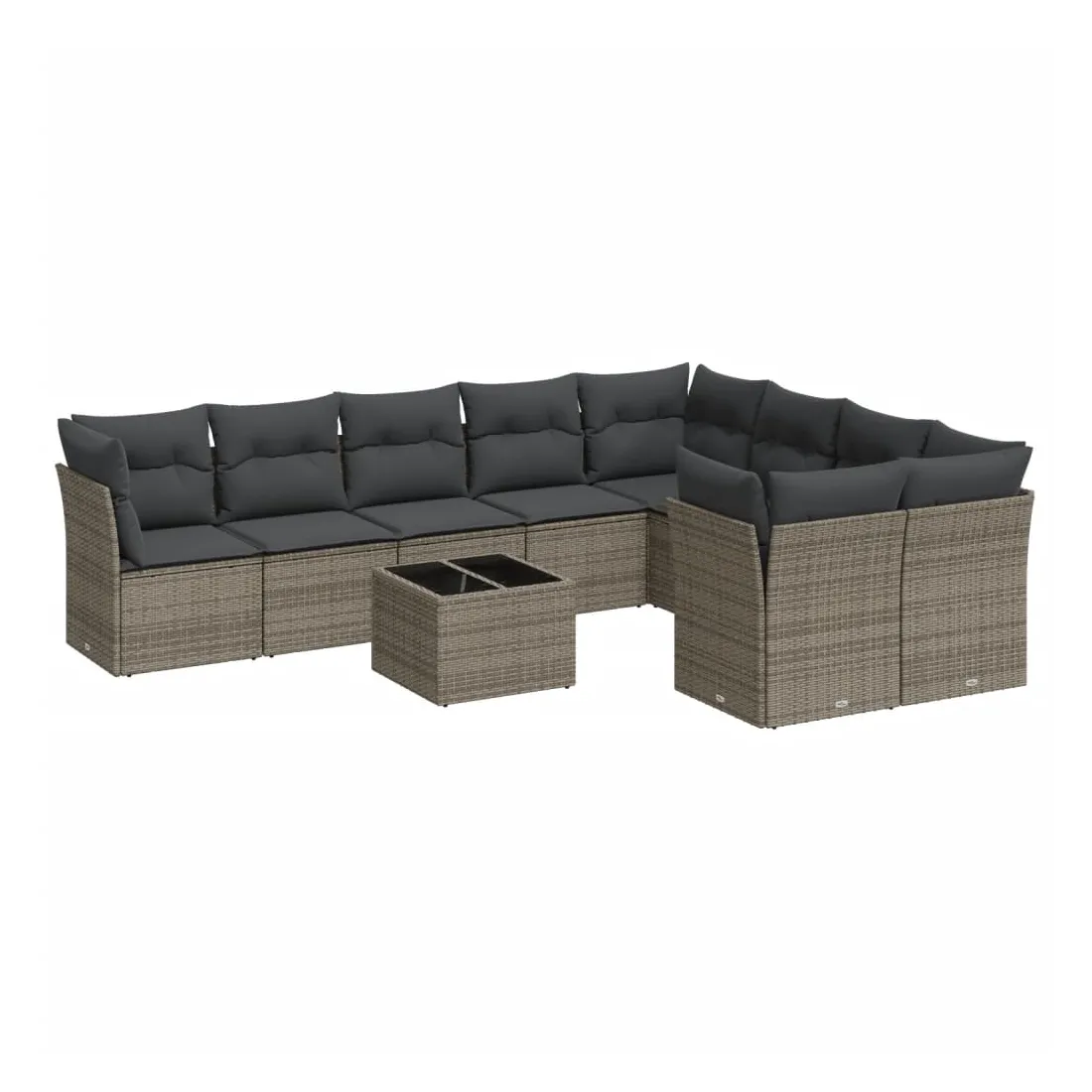 Salon de jardin avec coussins 10 pcs gris résine tressée