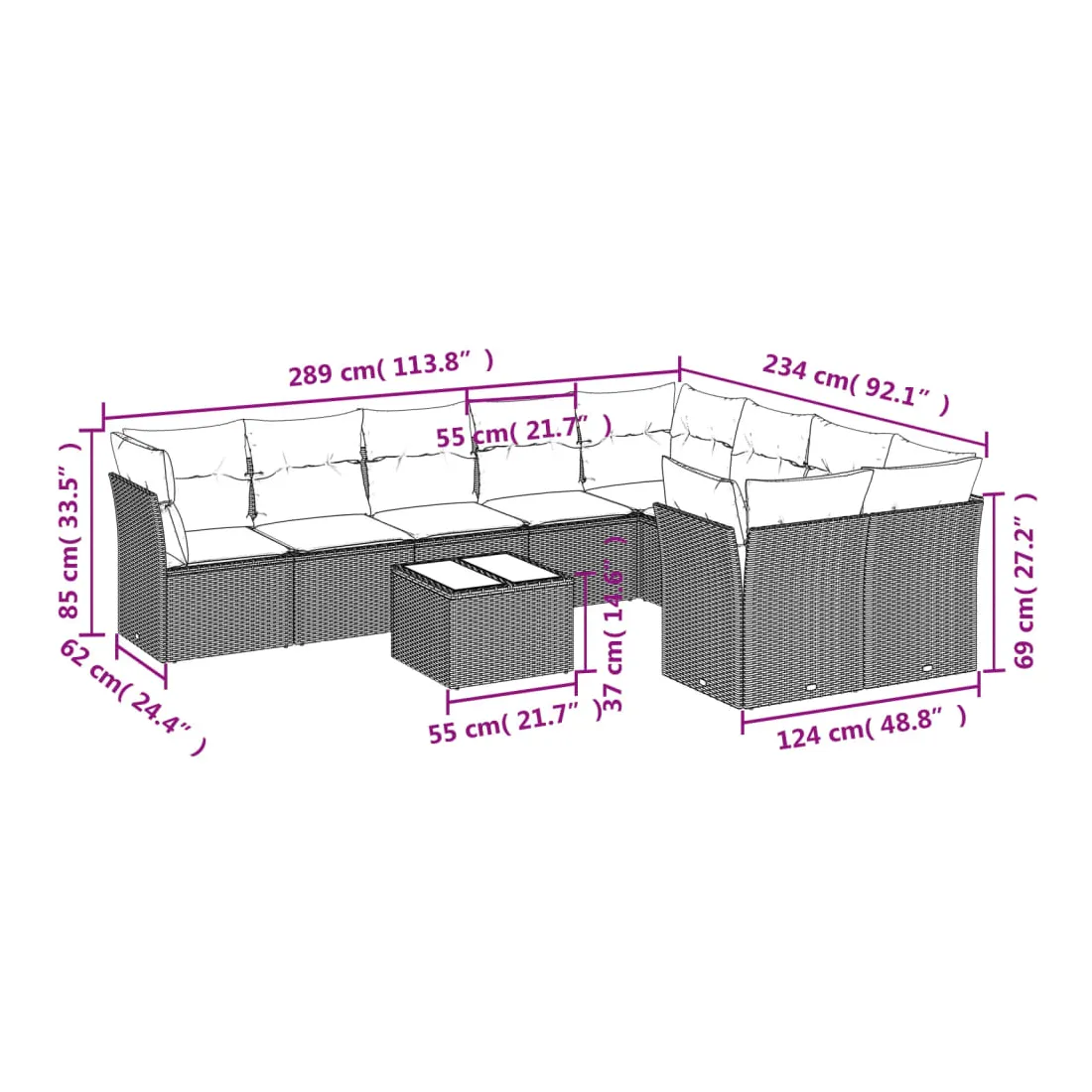 • 9 x coussin d'assise avec housse amovible et lavable