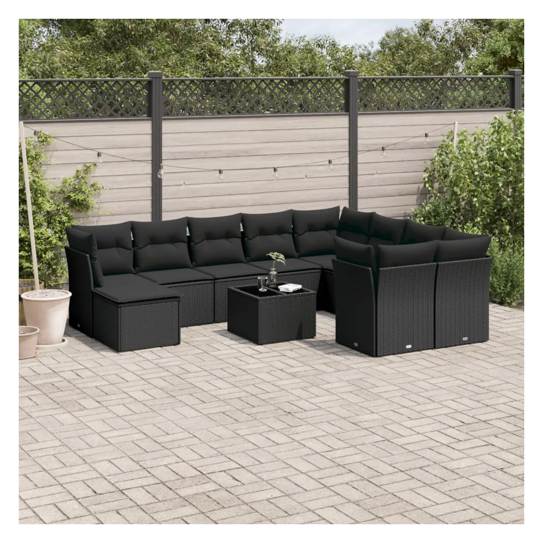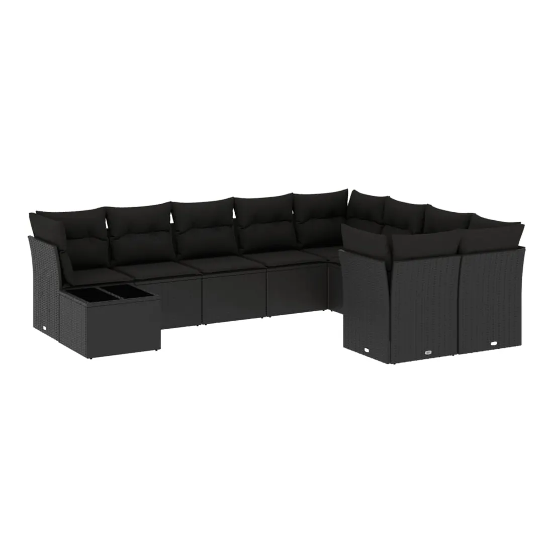 Salon de jardin 10 pcs avec coussins noir résine tressée