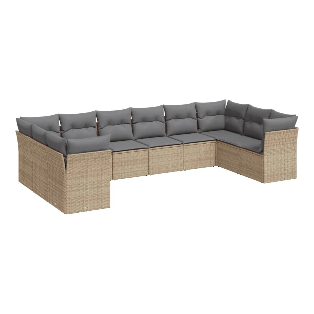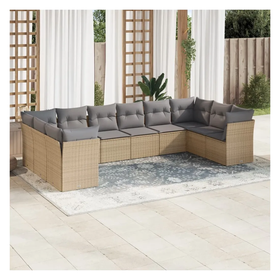 Salon de jardin avec coussins 10 pcs beige résine tressée