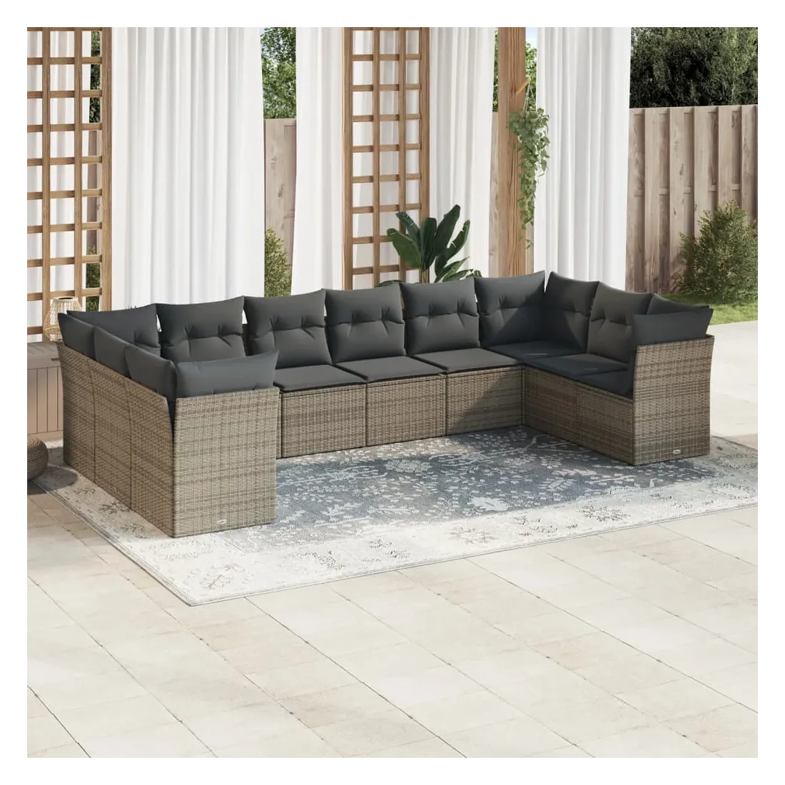 Cet ensemble de canapés de jardin est le complément parfait de votre arrière-cour, terrasse ou patio, offrant un espace confortable et accueillant pour discuter avec la famille et les amis ou simplement se détendre et profiter de l'extérieur. Matériau durable : la résine tressée, également connue sous le nom de poly rotin, est un matériau synthétique solide et nécessitant peu d'entretien qui ressemble au rotin naturel. Il est léger, facile à nettoyer et couramment utilisé pour les meubles d'extérieur en raison de sa durabilité et de ses propriétés de résistance aux intempéries.Expérience d'assise confortable : ce mobilier d'extérieur, doté de coussins épais, offre une expérience d'assise confortable.Housse amovible et lavable : ces coussins de siège sont dotés de housses amovibles pour un lavage et un entretien faciles.Conception modulaire : cet ensemble de meubles d'extérieur a une conception modulaire, ce qui le rend complètement flexible et facile à déplacer, afin que vous puissiez créer un agencement de meubles d'extérieur personnalisé. Bon à savoir :Pour que vos meubles d'extérieur restent beaux, nous vous recommandons de les protéger avec une housse imperméable.