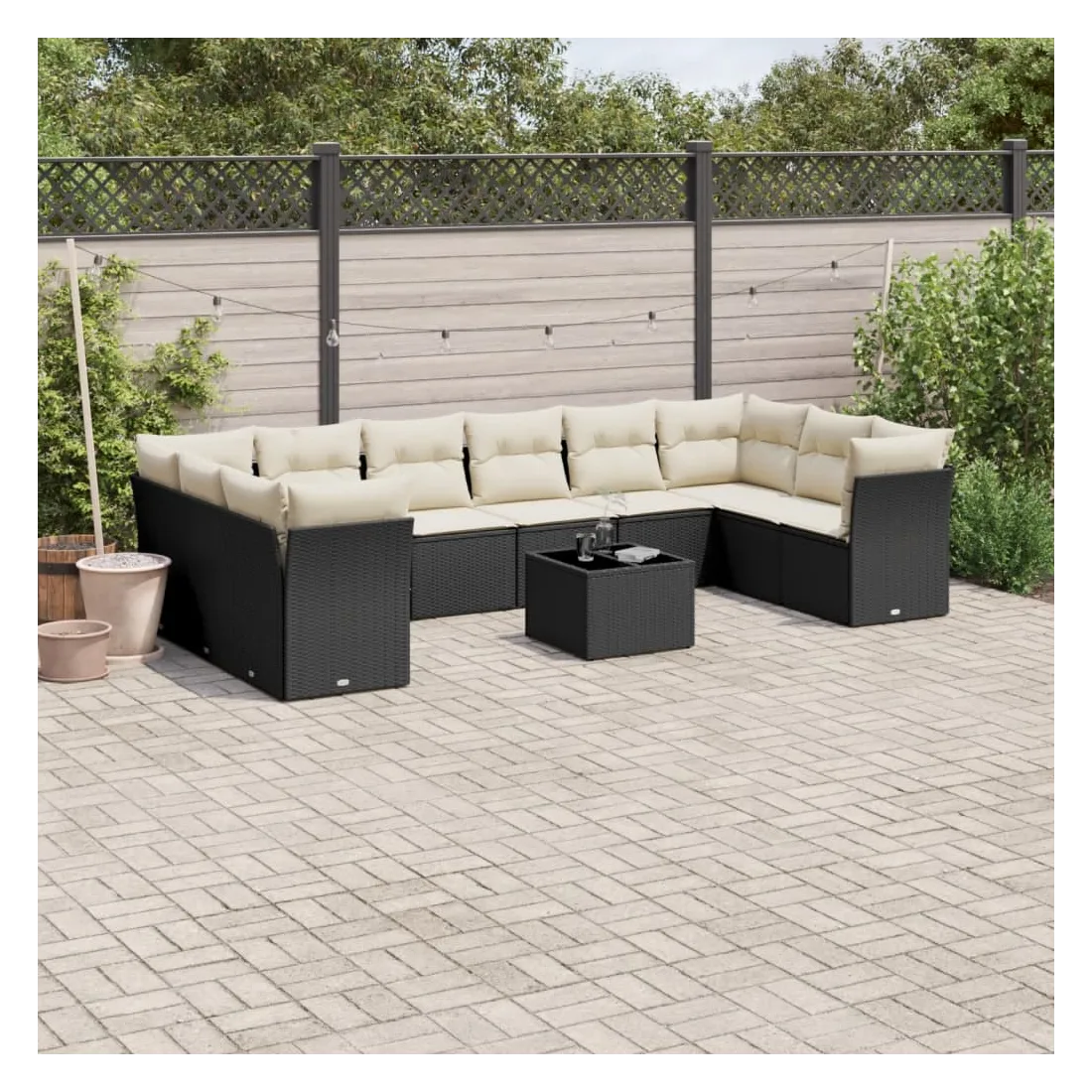 Salon de jardin 11 pcs avec coussins noir résine tressée