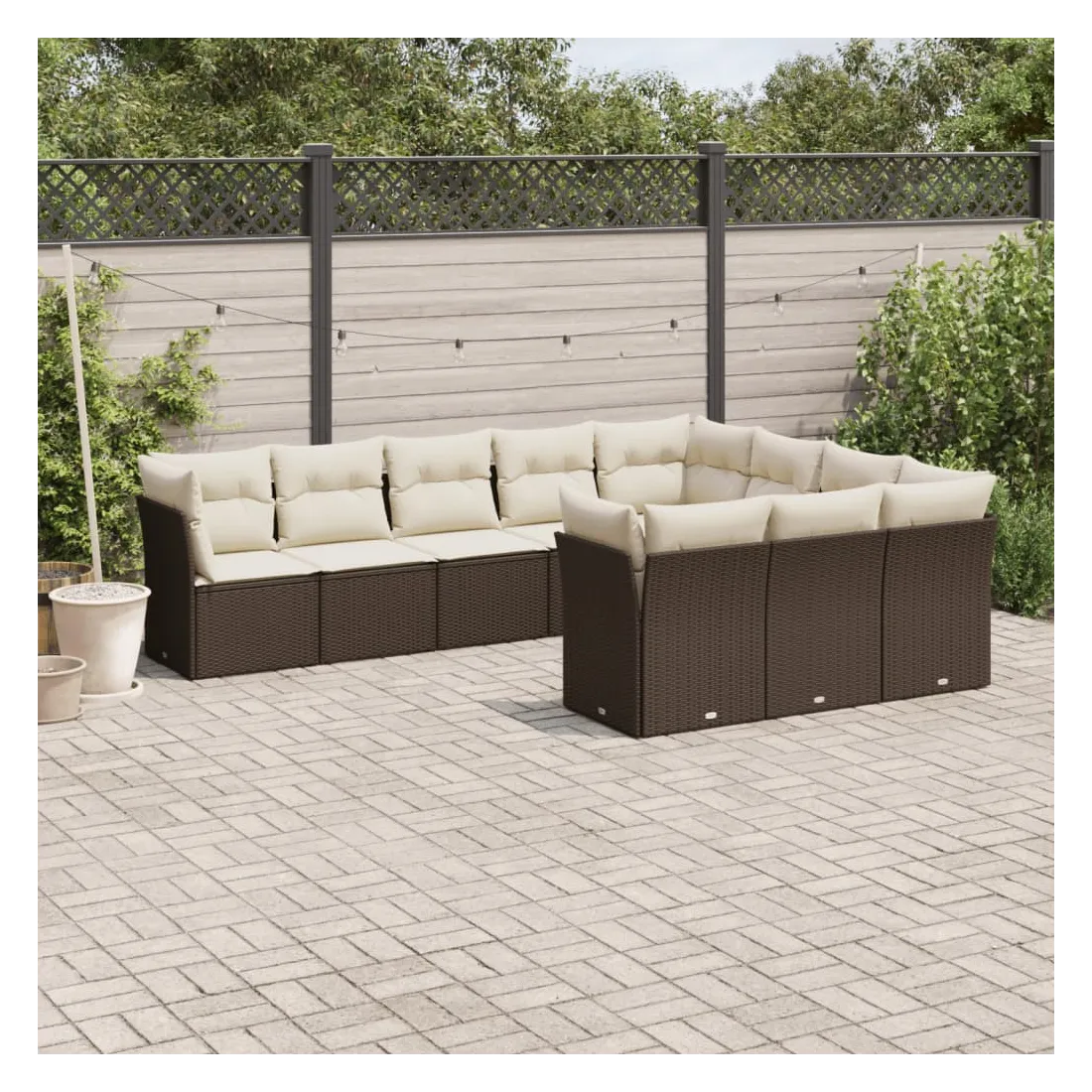 Salon de jardin 10 pcs avec coussins marron résine tressée