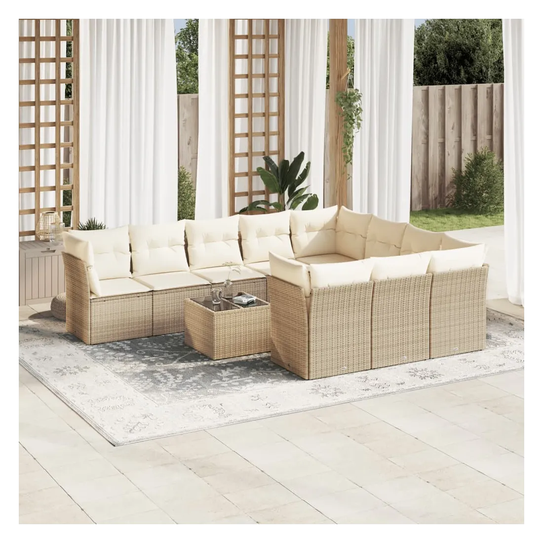 Cet ensemble de canapés de jardin est le complément parfait de votre arrière-cour, terrasse ou patio, offrant un espace confortable et accueillant pour discuter avec la famille et les amis ou simplement se détendre et profiter de l'extérieur. Matériau durable : la résine tressée, également connue sous le nom de poly rotin, est un matériau synthétique solide et nécessitant peu d'entretien qui ressemble au rotin naturel. Il est léger, facile à nettoyer et couramment utilisé pour les meubles d'extérieur en raison de sa durabilité et de ses propriétés de résistance aux intempéries.Expérience d'assise confortable : ce mobilier d'extérieur, doté de coussins épais, offre une expérience d'assise confortable.Dessus en verre : le dessus de la table d'extérieur est fabriqué en verre trempé solide et durable, ce qui le rend facile à nettoyer avec un chiffon humide et ajoute une touche d'élégance à votre espace extérieur.Housse amovible et lavable : ces coussins de siège sont dotés de housses amovibles pour un lavage et un entretien faciles.Conception modulaire : cet ensemble de meubles d'extérieur a une conception modulaire, ce qui le rend complètement flexible et facile à déplacer, afin que vous puissiez créer un agencement de meubles d'extérieur personnalisé. Bon à savoir :Pour que vos meubles d'extérieur restent beaux, nous vous recommandons de les protéger avec une housse imperméable.