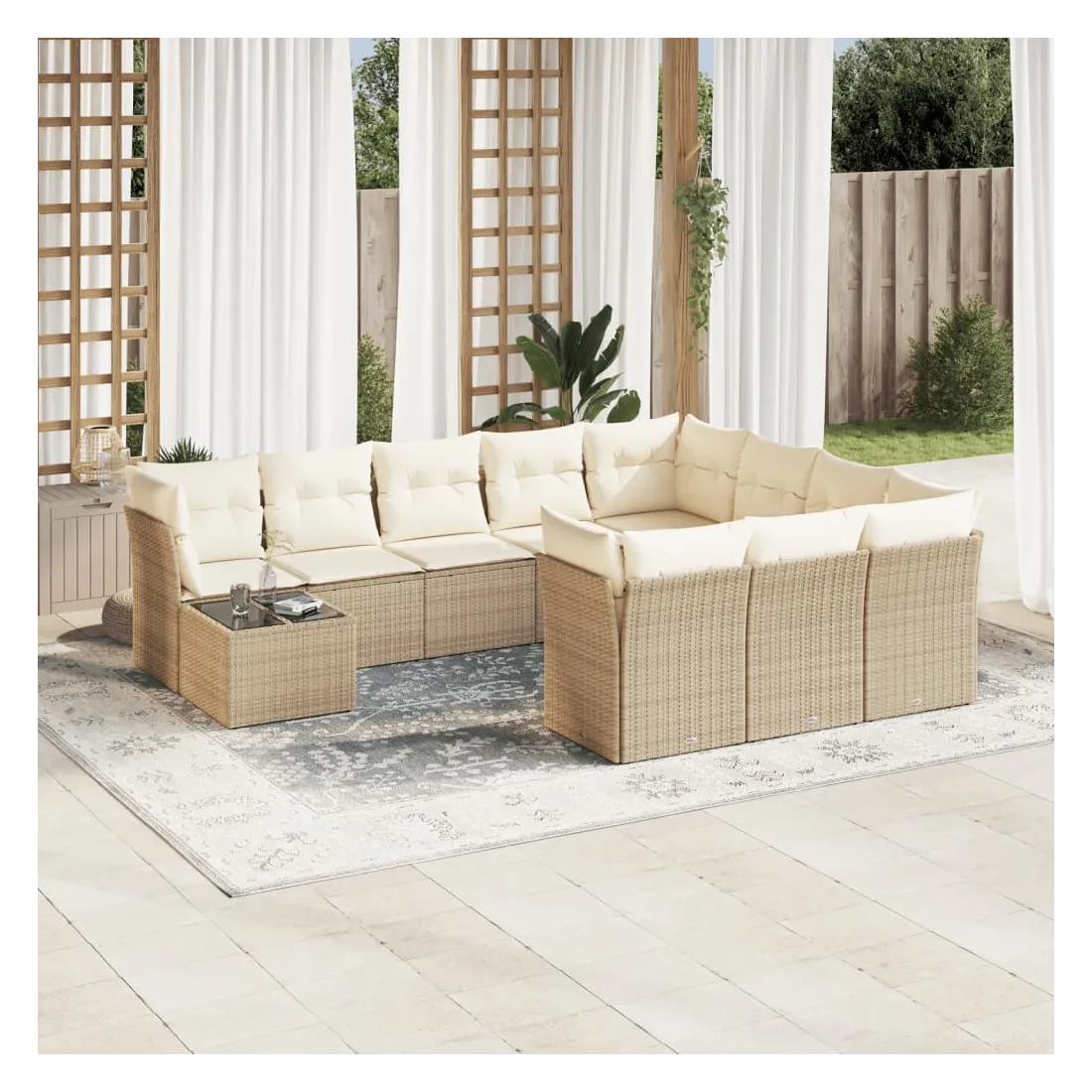 Cet ensemble de canapés de jardin est le complément parfait de votre arrière-cour, terrasse ou patio, offrant un espace confortable et accueillant pour discuter avec la famille et les amis ou simplement se détendre et profiter de l'extérieur. Matériau durable : la résine tressée, également connue sous le nom de poly rotin, est un matériau synthétique solide et nécessitant peu d'entretien qui ressemble au rotin naturel. Il est léger, facile à nettoyer et couramment utilisé pour les meubles d'extérieur en raison de sa durabilité et de ses propriétés de résistance aux intempéries.Expérience d'assise confortable : ce mobilier d'extérieur, doté de coussins épais, offre une expérience d'assise confortable.Dessus en verre : le dessus de la table d'extérieur est fabriqué en verre trempé solide et durable, ce qui le rend facile à nettoyer avec un chiffon humide et ajoute une touche d'élégance à votre espace extérieur.Housse amovible et lavable : ces coussins de siège sont dotés de housses amovibles pour un lavage et un entretien faciles.Conception modulaire : cet ensemble de meubles d'extérieur a une conception modulaire, ce qui le rend complètement flexible et facile à déplacer, afin que vous puissiez créer un agencement de meubles d'extérieur personnalisé. Bon à savoir :Pour que vos meubles d'extérieur restent beaux, nous vous recommandons de les protéger avec une housse imperméable.