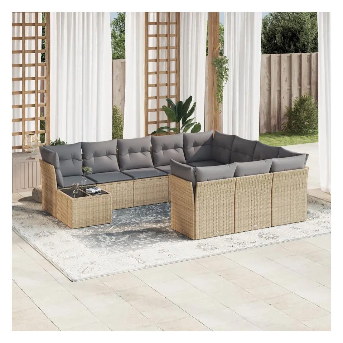 Salon de jardin 11 pcs avec coussins beige résine tressée