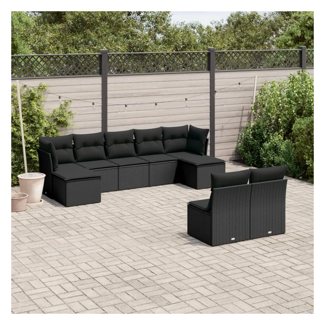 Cet ensemble de canapés de jardin est le complément parfait de votre arrière-cour, terrasse ou patio, offrant un espace confortable et accueillant pour discuter avec la famille et les amis ou simplement se détendre et profiter de l'extérieur. Matériau durable : la résine tressée, également connue sous le nom de poly rotin, est un matériau synthétique solide et nécessitant peu d'entretien qui ressemble au rotin naturel. Il est léger, facile à nettoyer et couramment utilisé pour les meubles d'extérieur en raison de sa durabilité et de ses propriétés de résistance aux intempéries.Expérience d'assise confortable : ce mobilier d'extérieur, doté de coussins épais, offre une expérience d'assise confortable.Housse amovible et lavable : ces coussins de siège sont dotés de housses amovibles pour un lavage et un entretien faciles.Conception modulaire : cet ensemble de meubles d'extérieur a une conception modulaire, ce qui le rend complètement flexible et facile à déplacer, afin que vous puissiez créer un agencement de meubles d'extérieur personnalisé. Bon à savoir :Pour que vos meubles d'extérieur restent beaux, nous vous recommandons de les protéger avec une housse imperméable.