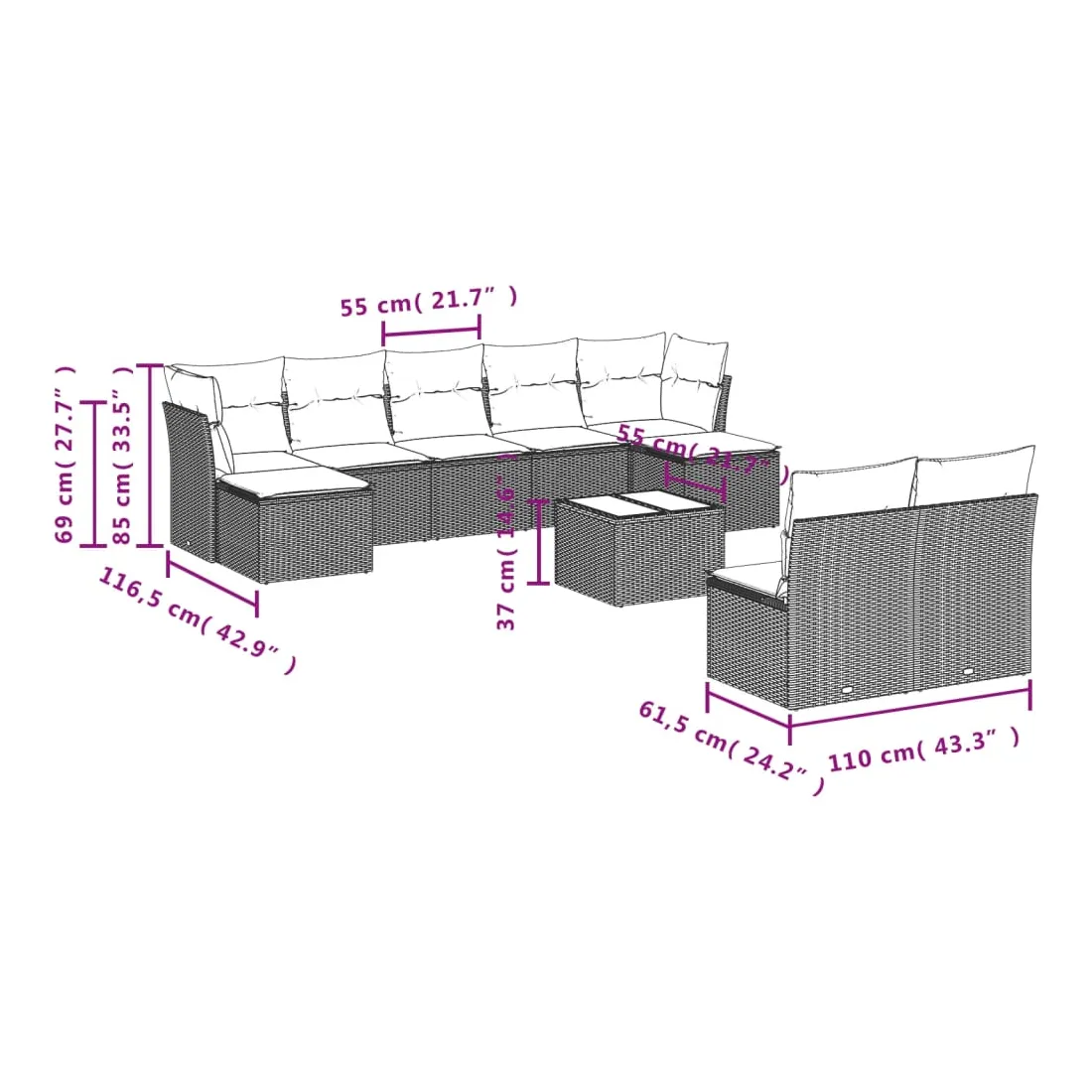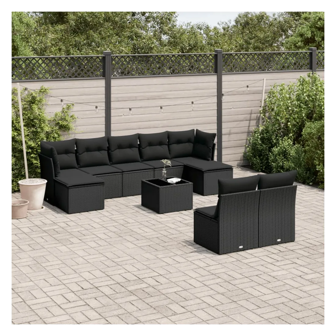 Cet ensemble de canapés de jardin est le complément parfait de votre arrière-cour, terrasse ou patio, offrant un espace confortable et accueillant pour discuter avec la famille et les amis ou simplement se détendre et profiter de l'extérieur. Matériau durable : la résine tressée, également connue sous le nom de poly rotin, est un matériau synthétique solide et nécessitant peu d'entretien qui ressemble au rotin naturel. Il est léger, facile à nettoyer et couramment utilisé pour les meubles d'extérieur en raison de sa durabilité et de ses propriétés de résistance aux intempéries.Expérience d'assise confortable : ce mobilier d'extérieur, doté de coussins épais, offre une expérience d'assise confortable.Dessus en verre : le dessus de la table d'extérieur est fabriqué en verre trempé solide et durable, ce qui le rend facile à nettoyer avec un chiffon humide et ajoute une touche d'élégance à votre espace extérieur.Housse amovible et lavable : ces coussins de siège sont dotés de housses amovibles pour un lavage et un entretien faciles.Conception modulaire : cet ensemble de meubles d'extérieur a une conception modulaire, ce qui le rend complètement flexible et facile à déplacer, afin que vous puissiez créer un agencement de meubles d'extérieur personnalisé. Bon à savoir :Pour que vos meubles d'extérieur restent beaux, nous vous recommandons de les protéger avec une housse imperméable.