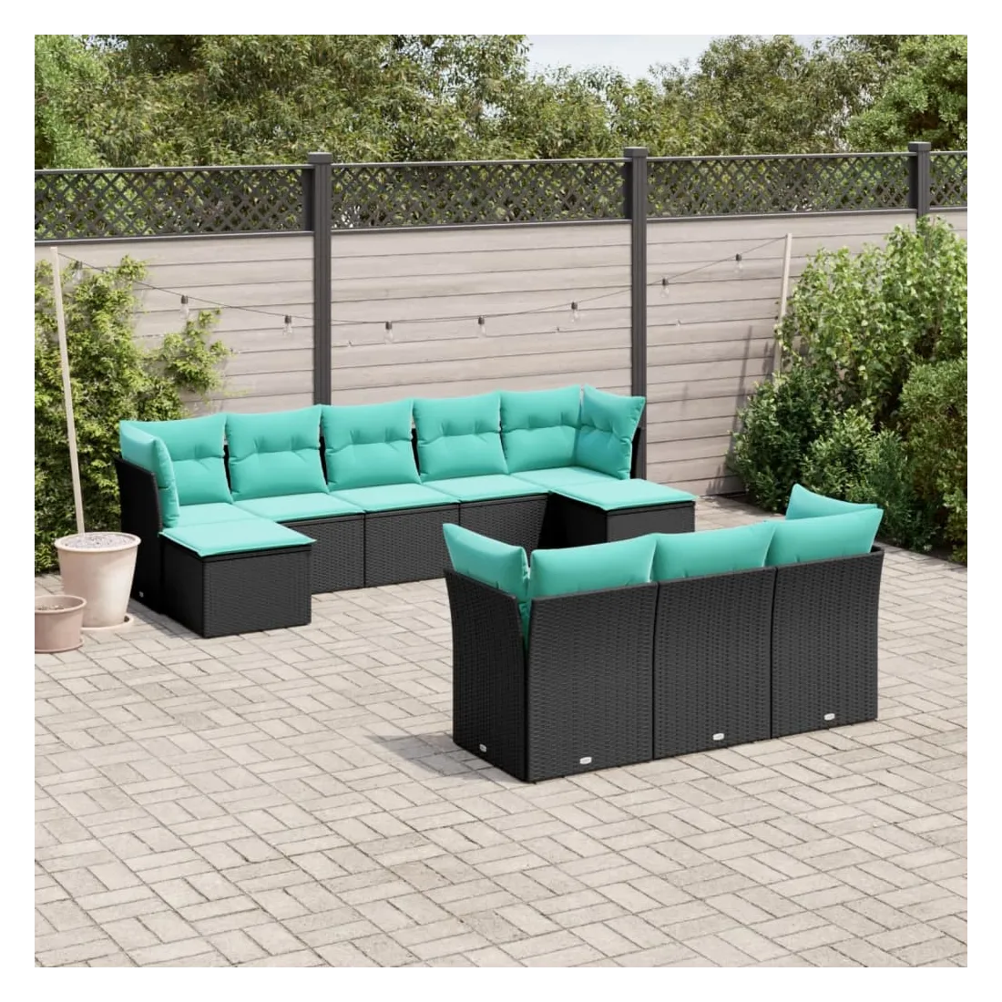 Cet ensemble de canapés de jardin est le complément parfait de votre arrière-cour, terrasse ou patio, offrant un espace confortable et accueillant pour discuter avec la famille et les amis ou simplement se détendre et profiter de l'extérieur. Matériau durable : la résine tressée, également connue sous le nom de poly rotin, est un matériau synthétique solide et nécessitant peu d'entretien qui ressemble au rotin naturel. Elle est légère, facile à nettoyer et couramment utilisée pour les meubles d'extérieur en raison de sa durabilité et de ses propriétés de résistance aux intempéries.Expérience d'assise confortable : ce mobilier d'extérieur, doté de coussins épais, offre une expérience d'assise confortable.Housse amovible et lavable : ces coussins de siège sont dotés de housses amovibles pour un lavage et un entretien faciles.Conception modulaire : cet ensemble de meubles d'extérieur a une conception modulaire, ce qui le rend complètement flexible et facile à déplacer, afin que vous puissiez créer un agencement de meubles d'extérieur personnalisé. Bon à savoir :Pour que vos meubles d'extérieur restent beaux, nous vous recommandons de les protéger avec une housse imperméable.