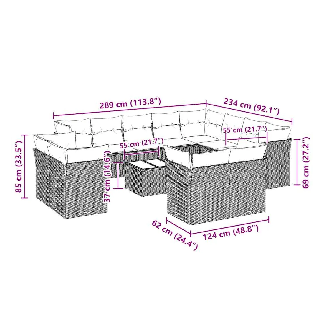 Cet ensemble de canapés de jardin est le complément parfait de votre arrière-cour, terrasse ou patio, offrant un espace confortable et accueillant pour discuter avec la famille et les amis ou simplement se détendre et profiter de l'extérieur. Matériau durable : la résine tressée, également connue sous le nom de poly rotin, est un matériau synthétique solide et nécessitant peu d'entretien qui ressemble au rotin naturel. Il est léger, facile à nettoyer et couramment utilisé pour les meubles d'extérieur en raison de sa durabilité et de ses propriétés de résistance aux intempéries.Expérience d'assise confortable : ce mobilier d'extérieur, doté de coussins épais, offre une expérience d'assise confortable.Dessus en verre : le dessus de la table d'extérieur est fabriqué en verre trempé solide et durable, ce qui le rend facile à nettoyer avec un chiffon humide et ajoute une touche d'élégance à votre espace extérieur.Housse amovible et lavable : ces coussins de siège sont dotés de housses amovibles pour un lavage et un entretien faciles.Conception modulaire : cet ensemble de meubles d'extérieur a une conception modulaire, ce qui le rend complètement flexible et facile à déplacer, afin que vous puissiez créer un agencement de meubles d'extérieur personnalisé. Bon à savoir :Pour que vos meubles d'extérieur restent beaux, nous vous recommandons de les protéger avec une housse imperméable.