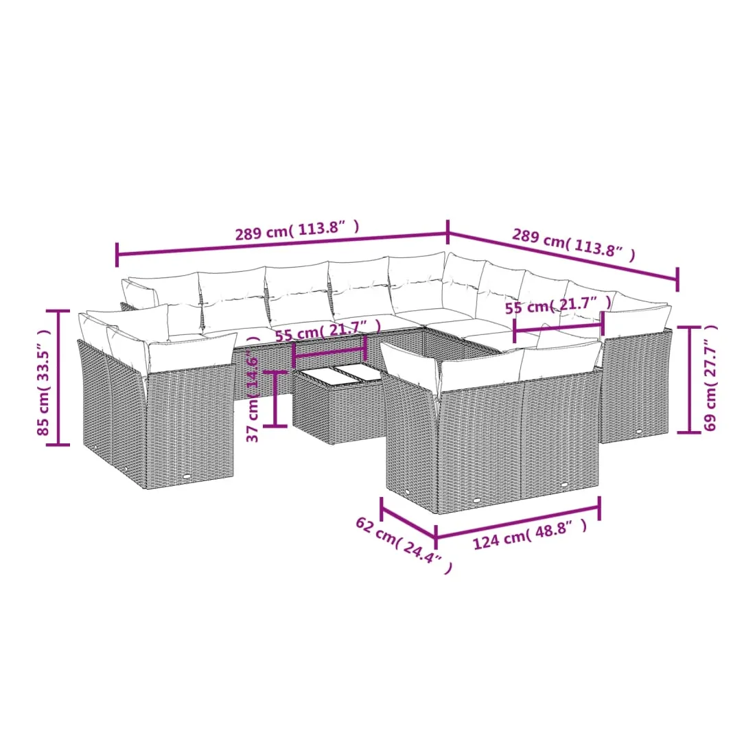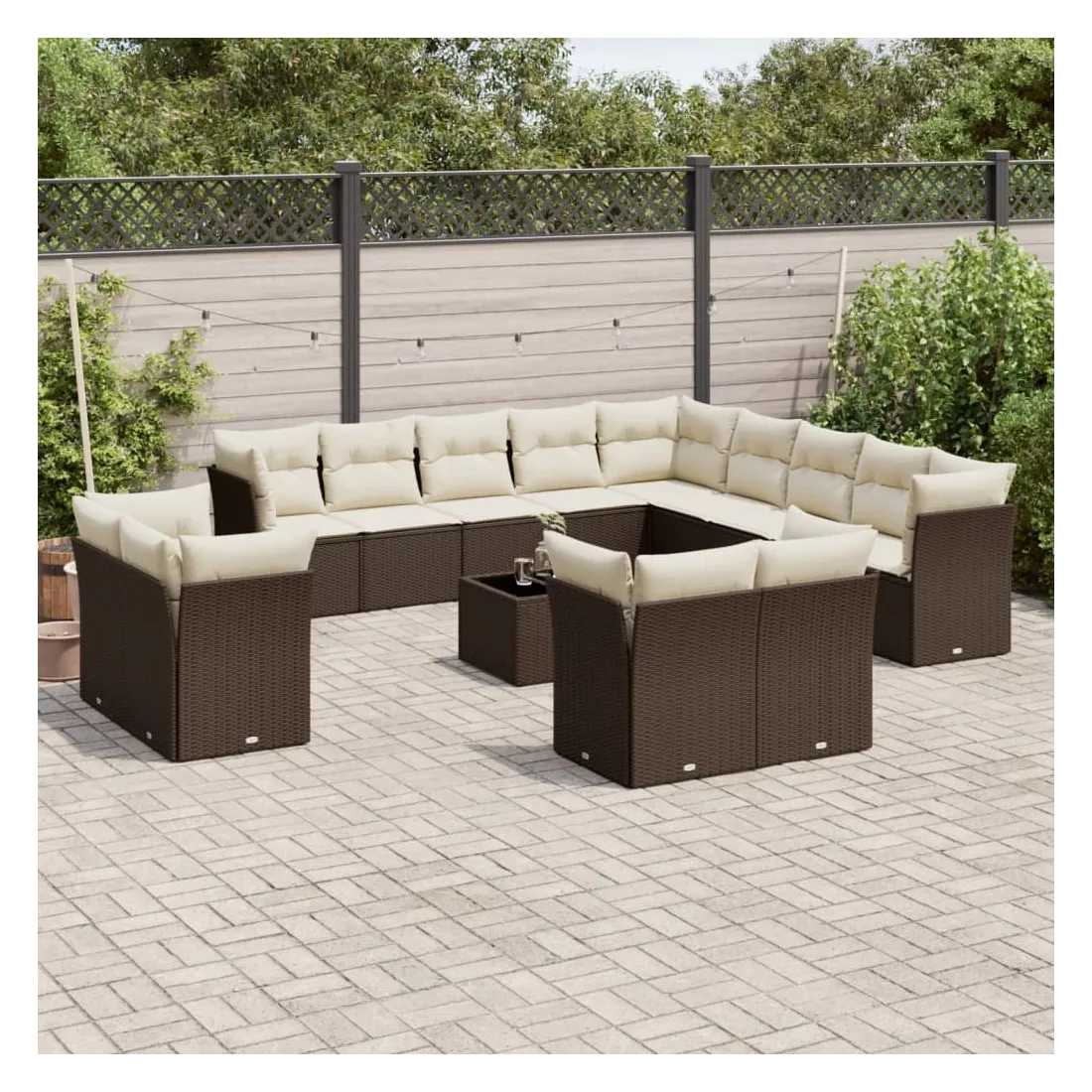 Cet ensemble de canapés de jardin est le complément parfait de votre arrière-cour, terrasse ou patio, offrant un espace confortable et accueillant pour discuter avec la famille et les amis ou simplement se détendre et profiter de l'extérieur. Matériau durable : la résine tressée, également connue sous le nom de poly rotin, est un matériau synthétique solide et nécessitant peu d'entretien qui ressemble au rotin naturel. Il est léger, facile à nettoyer et couramment utilisé pour les meubles d'extérieur en raison de sa durabilité et de ses propriétés de résistance aux intempéries.Expérience d'assise confortable : ce mobilier d'extérieur, doté de coussins épais, offre une expérience d'assise confortable.Dessus en verre : le dessus de la table d'extérieur est fabriqué en verre trempé solide et durable, ce qui le rend facile à nettoyer avec un chiffon humide et ajoute une touche d'élégance à votre espace extérieur.Housse amovible et lavable : ces coussins de siège sont dotés de housses amovibles pour un lavage et un entretien faciles.Conception modulaire : cet ensemble de meubles d'extérieur a une conception modulaire, ce qui le rend complètement flexible et facile à déplacer, afin que vous puissiez créer un agencement de meubles d'extérieur personnalisé. Bon à savoir :Pour que vos meubles d'extérieur restent beaux, nous vous recommandons de les protéger avec une housse imperméable.
