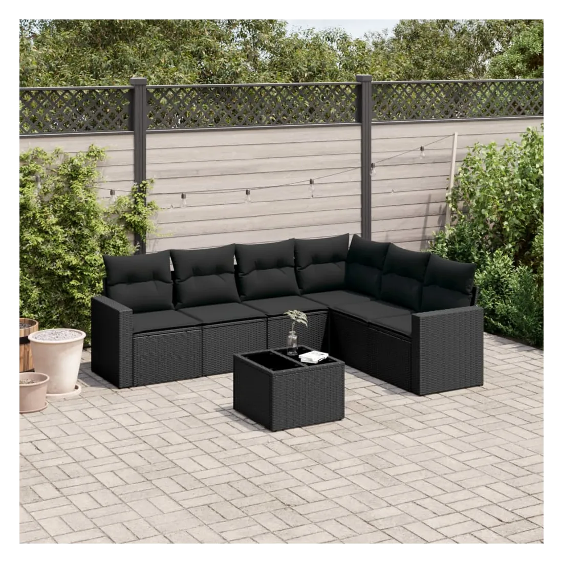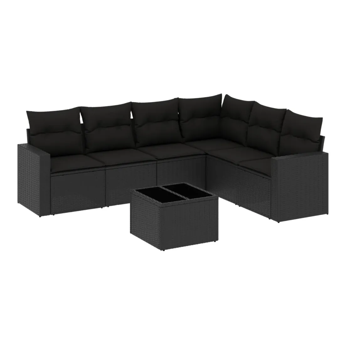 Salon de jardin 7 pcs avec coussins noir résine tressée