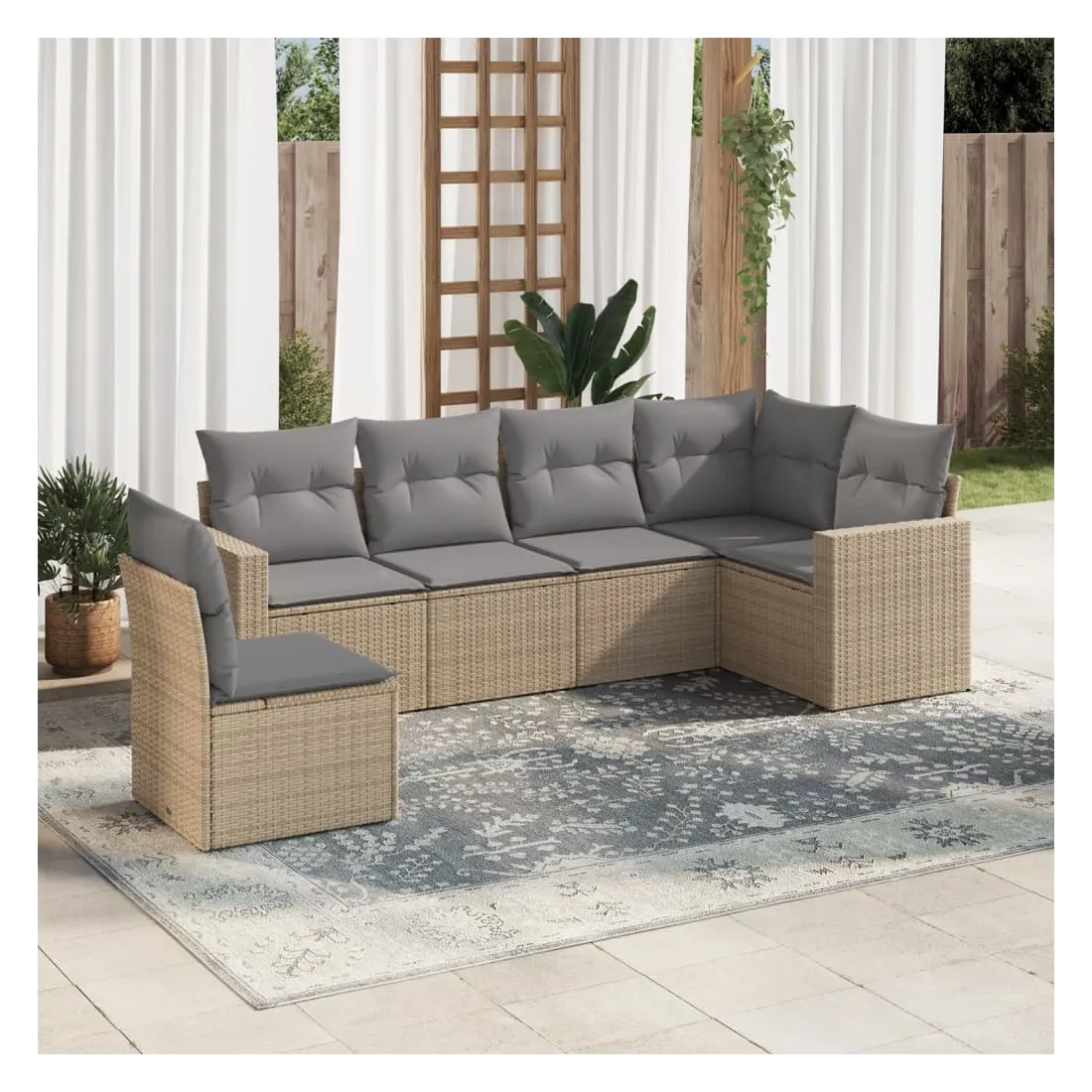 Salon de jardin avec coussins 6 pcs beige résine tressée