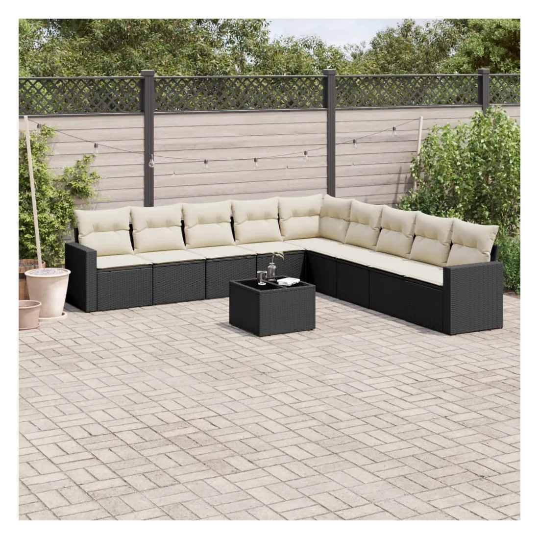 Cet ensemble de canapés de jardin est le complément parfait de votre arrière-cour, terrasse ou patio, offrant un espace confortable et accueillant pour discuter avec la famille et les amis ou simplement se détendre et profiter de l'extérieur. Matériau durable : la résine tressée, également connue sous le nom de poly rotin, est un matériau synthétique solide et nécessitant peu d'entretien qui ressemble au rotin naturel. Il est léger, facile à nettoyer et couramment utilisé pour les meubles d'extérieur en raison de sa durabilité et de ses propriétés de résistance aux intempéries.Expérience d'assise confortable : ce mobilier d'extérieur, doté de coussins épais, offre une expérience d'assise confortable. Les larges accoudoirs offrent également un endroit pratique pour garder votre téléphone portable, vos tasses ou d'autres petits objets à portée de main.Housse amovible et lavable : ces coussins de siège sont dotés de housses amovibles pour un lavage et un entretien faciles.Dessus en verre : le dessus de la table d'extérieur est fabriqué en verre trempé solide et durable, ce qui le rend facile à nettoyer avec un chiffon humide et ajoute une touche d'élégance à votre espace extérieur.Conception modulaire : cet ensemble de meubles d'extérieur a une conception modulaire, ce qui le rend complètement flexible et facile à déplacer, afin que vous puissiez créer un agencement de meubles d'extérieur personnalisé. Bon à savoir :Pour que vos meubles d'extérieur restent beaux, nous vous recommandons de les protéger avec une housse imperméable.