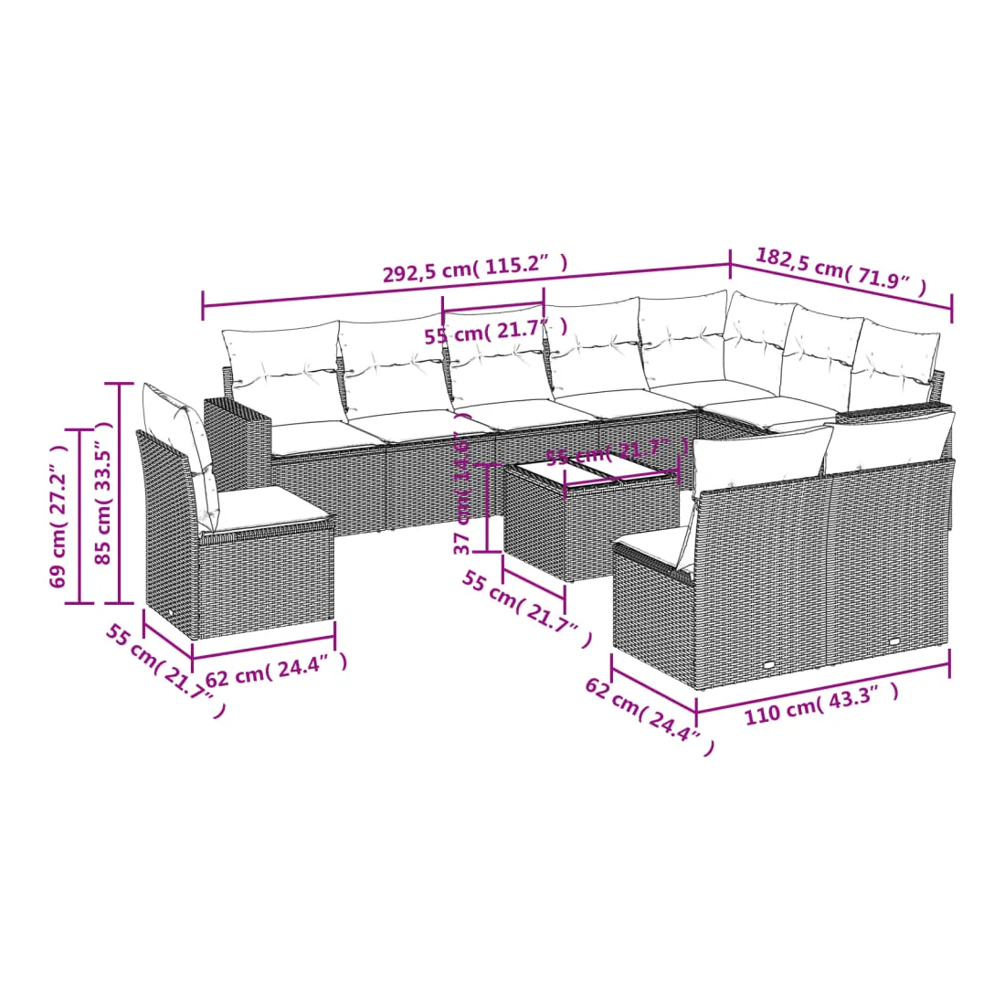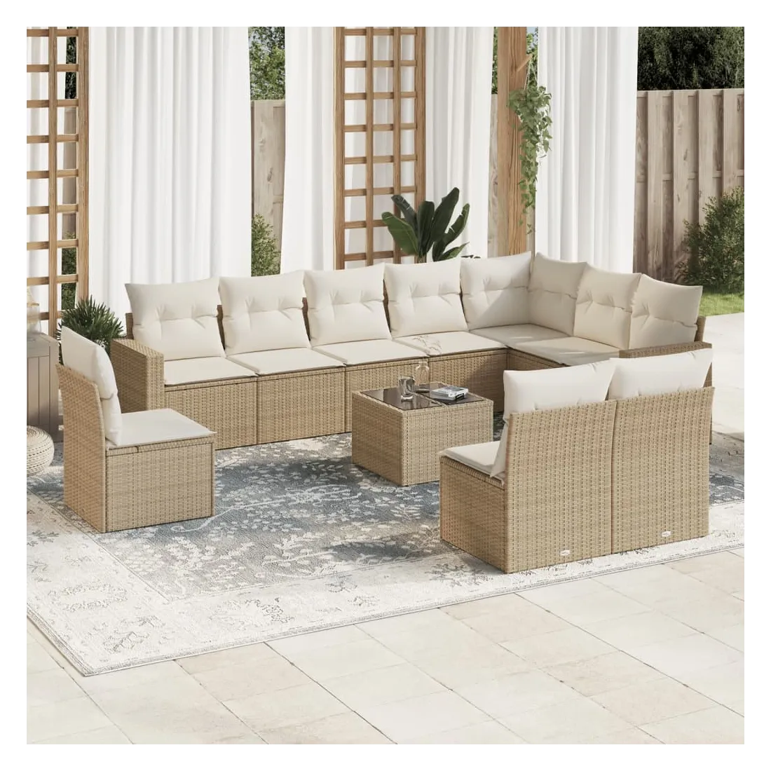 Cet ensemble de canapés de jardin est le complément parfait de votre arrière-cour, terrasse ou patio, offrant un espace confortable et accueillant pour discuter avec la famille et les amis ou simplement se détendre et profiter de l'extérieur. Matériau durable : la résine tressée, également connue sous le nom de poly rotin, est un matériau synthétique solide et nécessitant peu d'entretien qui ressemble au rotin naturel. Il est léger, facile à nettoyer et couramment utilisé pour les meubles d'extérieur en raison de sa durabilité et de ses propriétés de résistance aux intempéries.Expérience d'assise confortable : ce mobilier d'extérieur, doté de coussins épais, offre une expérience d'assise confortable. Les larges accoudoirs offrent également un endroit pratique pour garder votre téléphone portable, vos tasses ou d'autres petits objets à portée de main.Housse amovible et lavable : ces coussins de siège sont dotés de housses amovibles pour un lavage et un entretien faciles.Dessus en verre : le dessus de la table d'extérieur est fabriqué en verre trempé solide et durable, ce qui le rend facile à nettoyer avec un chiffon humide et ajoute une touche d'élégance à votre espace extérieur.Conception modulaire : cet ensemble de meubles d'extérieur a une conception modulaire, ce qui le rend complètement flexible et facile à déplacer, afin que vous puissiez créer un agencement de meubles d'extérieur personnalisé. Bon à savoir :Pour que vos meubles d'extérieur restent beaux, nous vous recommandons de les protéger avec une housse imperméable.