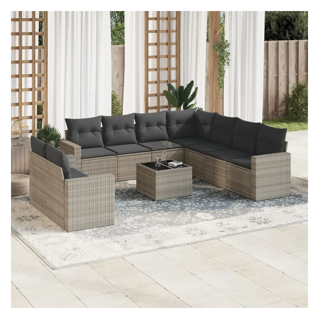Cet ensemble de canapés de jardin est le complément parfait de votre arrière-cour, terrasse ou patio, offrant un espace confortable et accueillant pour discuter avec la famille et les amis ou simplement se détendre et profiter de l'extérieur. Matériau durable : la résine tressée, également connue sous le nom de poly rotin, est un matériau synthétique solide et nécessitant peu d'entretien qui ressemble au rotin naturel. Il est léger, facile à nettoyer et couramment utilisé pour les meubles d'extérieur en raison de sa durabilité et de ses propriétés de résistance aux intempéries.Expérience d'assise confortable : ce mobilier d'extérieur, doté de coussins épais, offre une expérience d'assise confortable. Les larges accoudoirs offrent également un endroit pratique pour garder votre téléphone portable, vos tasses ou d'autres petits objets à portée de main.Housse amovible et lavable : ces coussins de siège sont dotés de housses amovibles pour un lavage et un entretien faciles.Dessus en verre : le dessus de la table d'extérieur est fabriqué en verre trempé solide et durable, ce qui le rend facile à nettoyer avec un chiffon humide et ajoute une touche d'élégance à votre espace extérieur.Conception modulaire : cet ensemble de meubles d'extérieur a une conception modulaire, ce qui le rend complètement flexible et facile à déplacer, afin que vous puissiez créer un agencement de meubles d'extérieur personnalisé. Bon à savoir :Pour que vos meubles d'extérieur restent beaux, nous vous recommandons de les protéger avec une housse imperméable.