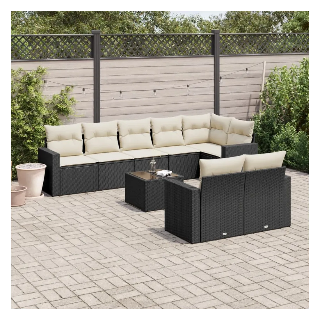 Cet ensemble de canapés de jardin est le complément parfait de votre arrière-cour, terrasse ou patio, offrant un espace confortable et accueillant pour discuter avec la famille et les amis ou simplement se détendre et profiter de l'extérieur. Matériau durable : la résine tressée, également connue sous le nom de poly rotin, est un matériau synthétique solide et nécessitant peu d'entretien qui ressemble au rotin naturel. Il est léger, facile à nettoyer et couramment utilisé pour les meubles d'extérieur en raison de sa durabilité et de ses propriétés de résistance aux intempéries.Expérience d'assise confortable : ce mobilier d'extérieur, doté de coussins épais, offre une expérience d'assise confortable. Les larges accoudoirs offrent également un endroit pratique pour garder votre téléphone portable, vos tasses ou d'autres petits objets à portée de main.Housse amovible et lavable : ces coussins de siège sont dotés de housses amovibles pour un lavage et un entretien faciles.Dessus en verre : le dessus de la table d'extérieur est fabriqué en verre trempé solide et durable, ce qui le rend facile à nettoyer avec un chiffon humide et ajoute une touche d'élégance à votre espace extérieur.Conception modulaire : cet ensemble de meubles d'extérieur a une conception modulaire, ce qui le rend complètement flexible et facile à déplacer, afin que vous puissiez créer un agencement de meubles d'extérieur personnalisé. Bon à savoir :Pour que vos meubles d'extérieur restent beaux, nous vous recommandons de les protéger avec une housse imperméable.