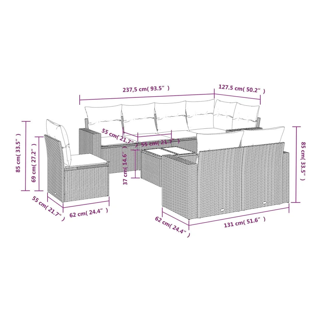 - Dimensions du coussin de dossier : 55 x 45 x 13 cm (L x l x é)