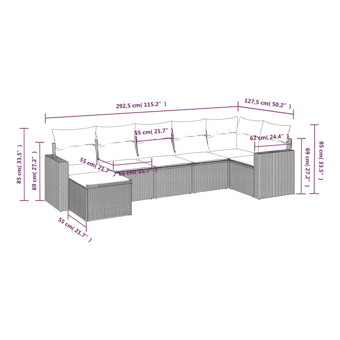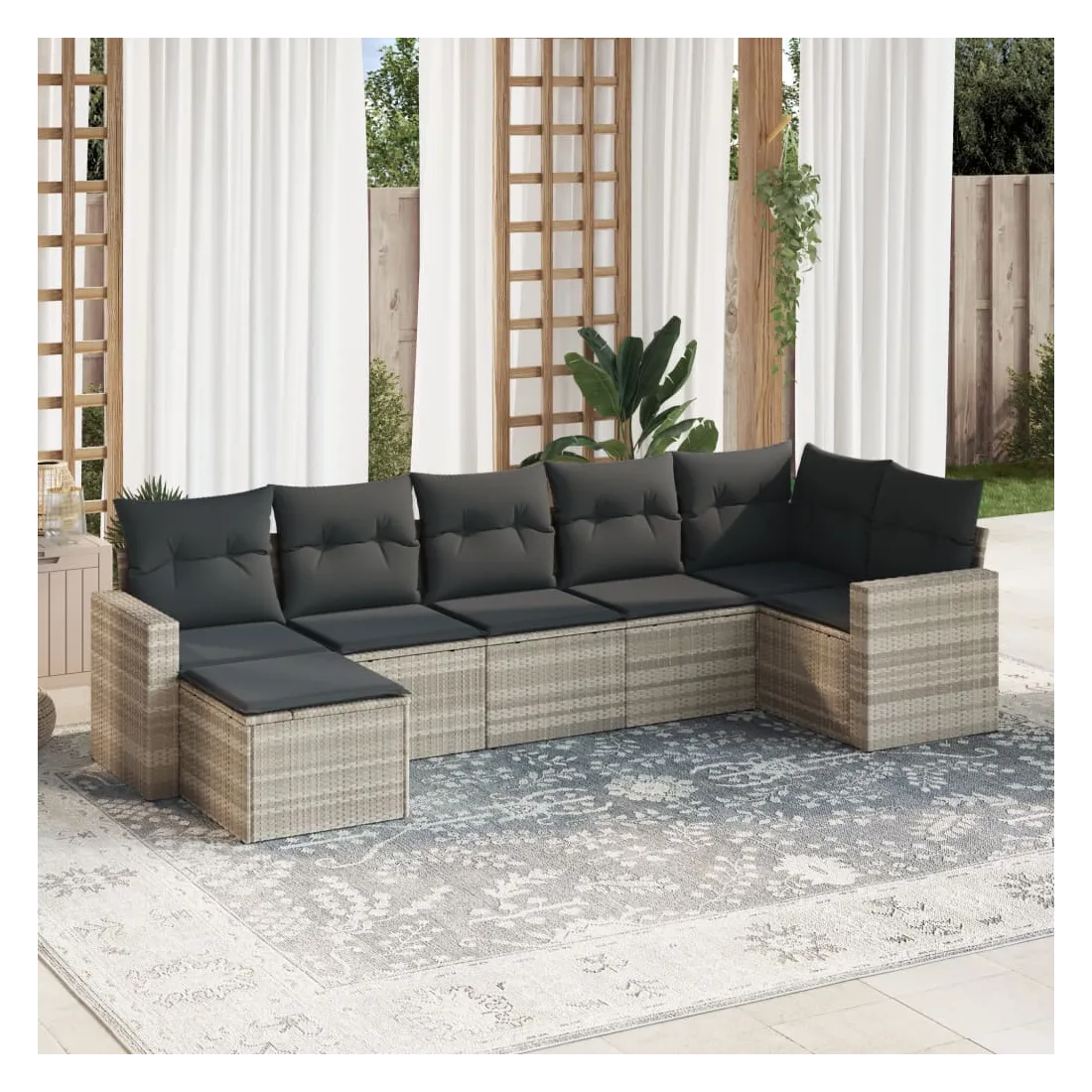 Cet ensemble de canapés de jardin est le complément parfait de votre arrière-cour, terrasse ou patio, offrant un espace confortable et accueillant pour discuter avec la famille et les amis ou simplement se détendre et profiter de l'extérieur. Matériau durable : la résine tressée, également connue sous le nom de poly rotin, est un matériau synthétique solide et nécessitant peu d'entretien qui ressemble au rotin naturel. Il est léger, facile à nettoyer et couramment utilisé pour les meubles d'extérieur en raison de sa durabilité et de ses propriétés de résistance aux intempéries.Expérience d'assise confortable : ce mobilier d'extérieur, doté de coussins épais, offre une expérience d'assise confortable. Les larges accoudoirs offrent également un endroit pratique pour garder votre téléphone portable, vos tasses ou d'autres petits objets à portée de main.Housse amovible et lavable : ces coussins de siège sont dotés de housses amovibles pour un lavage et un entretien faciles.Conception modulaire : cet ensemble de meubles d'extérieur a une conception modulaire, ce qui le rend complètement flexible et facile à déplacer, afin que vous puissiez créer un agencement de meubles d'extérieur personnalisé. Bon à savoir :Pour que vos meubles d'extérieur restent beaux, nous vous recommandons de les protéger avec une housse imperméable.