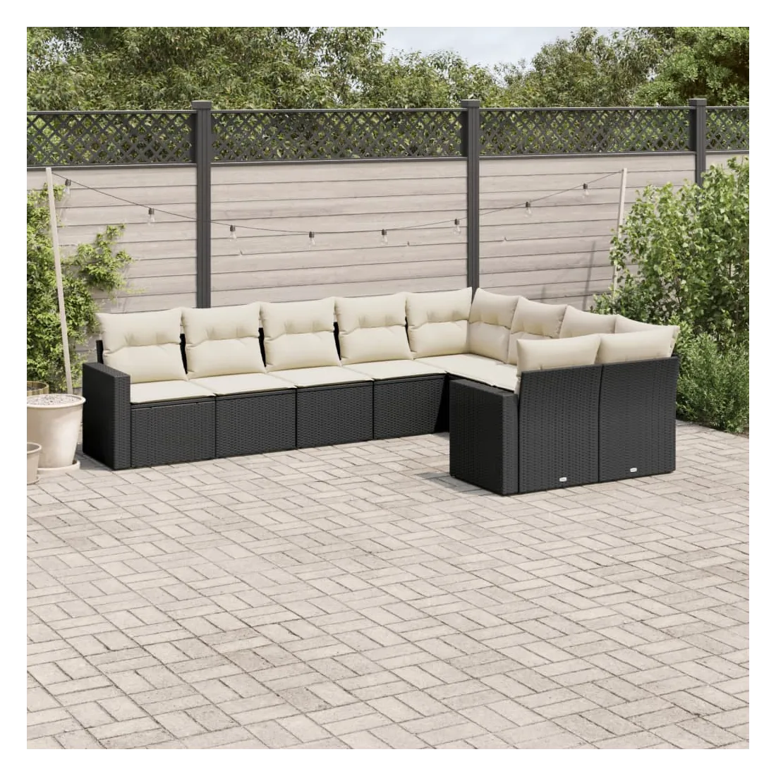 Salon de jardin 9 pcs avec coussins noir résine tressée