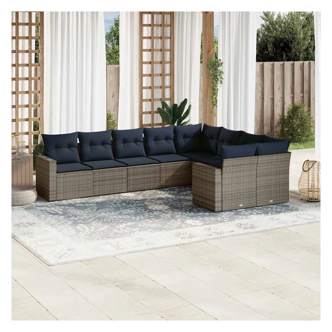 Cet ensemble de canapés de jardin est le complément parfait de votre arrière-cour, terrasse ou patio, offrant un espace confortable et accueillant pour discuter avec la famille et les amis ou simplement se détendre et profiter de l'extérieur. Matériau durable : la résine tressée, également connue sous le nom de poly rotin, est un matériau synthétique solide et nécessitant peu d'entretien qui ressemble au rotin naturel. Il est léger, facile à nettoyer et couramment utilisé pour les meubles d'extérieur en raison de sa durabilité et de ses propriétés de résistance aux intempéries.Expérience d'assise confortable : ce mobilier d'extérieur, doté de coussins épais, offre une expérience d'assise confortable.Housse amovible et lavable : ces coussins de siège sont dotés de housses amovibles pour un lavage et un entretien faciles.Conception modulaire : cet ensemble de meubles d'extérieur a une conception modulaire, ce qui le rend complètement flexible et facile à déplacer, afin que vous puissiez créer un agencement de meubles d'extérieur personnalisé. Bon à savoir :Pour que vos meubles d'extérieur restent beaux, nous vous recommandons de les protéger avec une housse imperméable.
