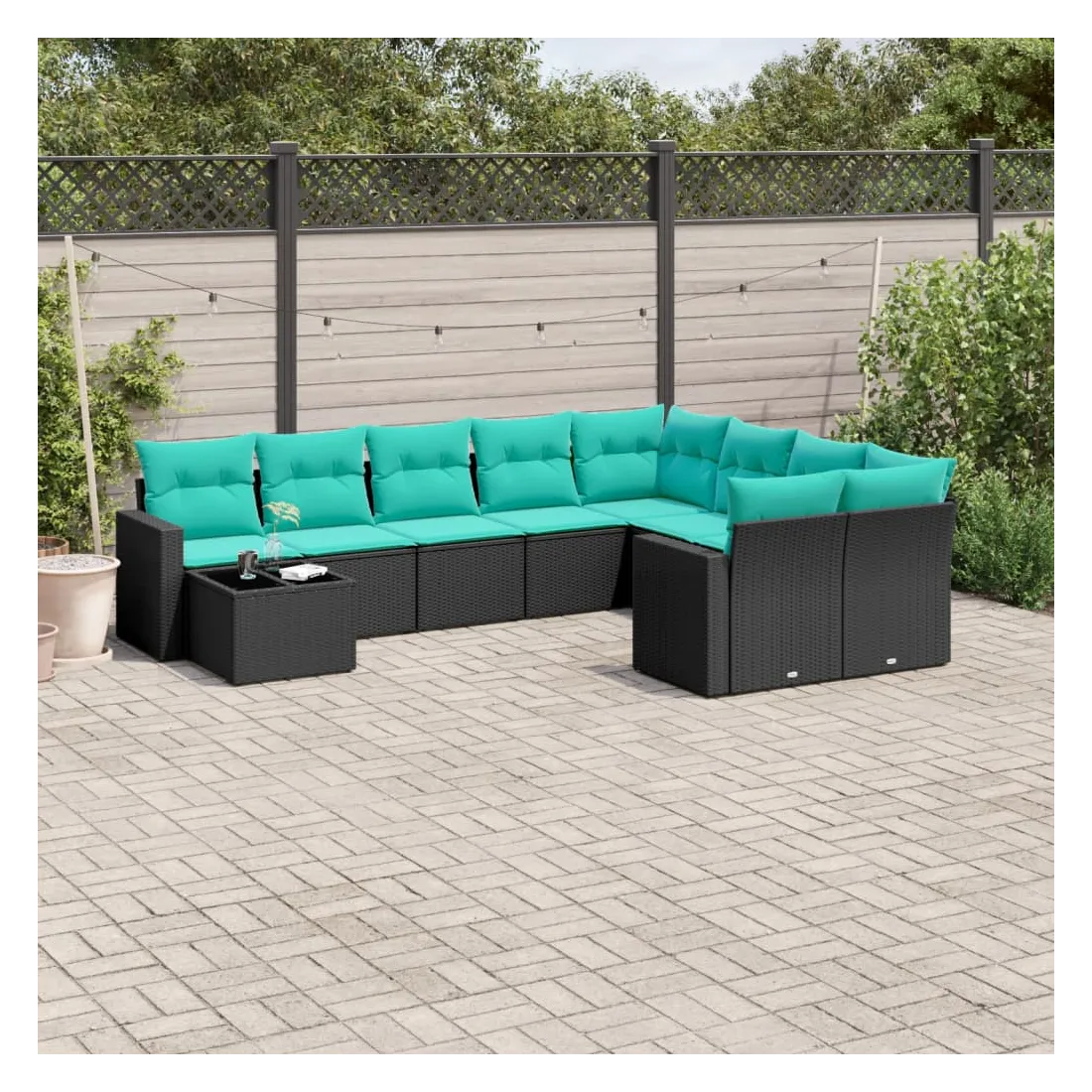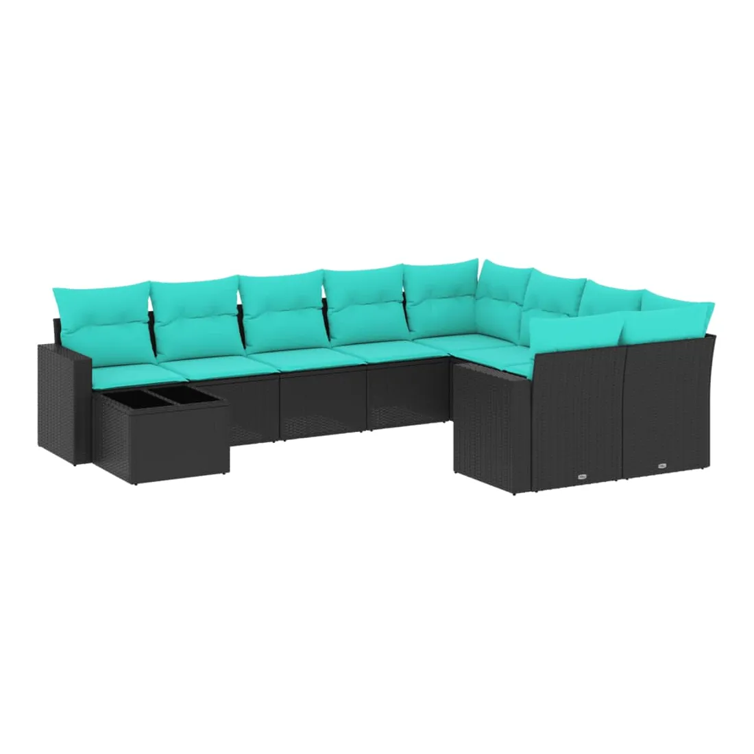 Salon de jardin 10 pcs avec coussins noir résine tressée