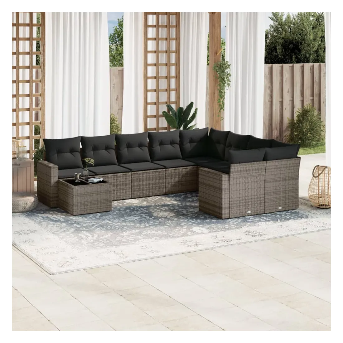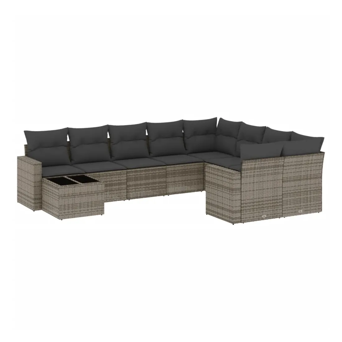 Salon de jardin avec coussins 10 pcs gris résine tressée