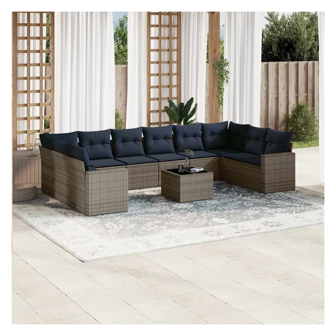 Cet ensemble de canapés de jardin est le complément parfait de votre arrière-cour, terrasse ou patio, offrant un espace confortable et accueillant pour discuter avec la famille et les amis ou simplement se détendre et profiter de l'extérieur. Matériau durable : la résine tressée, également connue sous le nom de poly rotin, est un matériau synthétique solide et nécessitant peu d'entretien qui ressemble au rotin naturel. Il est léger, facile à nettoyer et couramment utilisé pour les meubles d'extérieur en raison de sa durabilité et de ses propriétés de résistance aux intempéries.Expérience d'assise confortable : ce mobilier d'extérieur, doté de coussins épais, offre une expérience d'assise confortable.Housse amovible et lavable : ces coussins de siège sont dotés de housses amovibles pour un lavage et un entretien faciles.Dessus en verre : le dessus de la table d'extérieur est fabriqué en verre trempé solide et durable, ce qui le rend facile à nettoyer avec un chiffon humide et ajoute une touche d'élégance à votre espace extérieur.Conception modulaire : cet ensemble de meubles d'extérieur a une conception modulaire, ce qui le rend complètement flexible et facile à déplacer, afin que vous puissiez créer un agencement de meubles d'extérieur personnalisé. Bon à savoir :Pour que vos meubles d'extérieur restent beaux, nous vous recommandons de les protéger avec une housse imperméable.