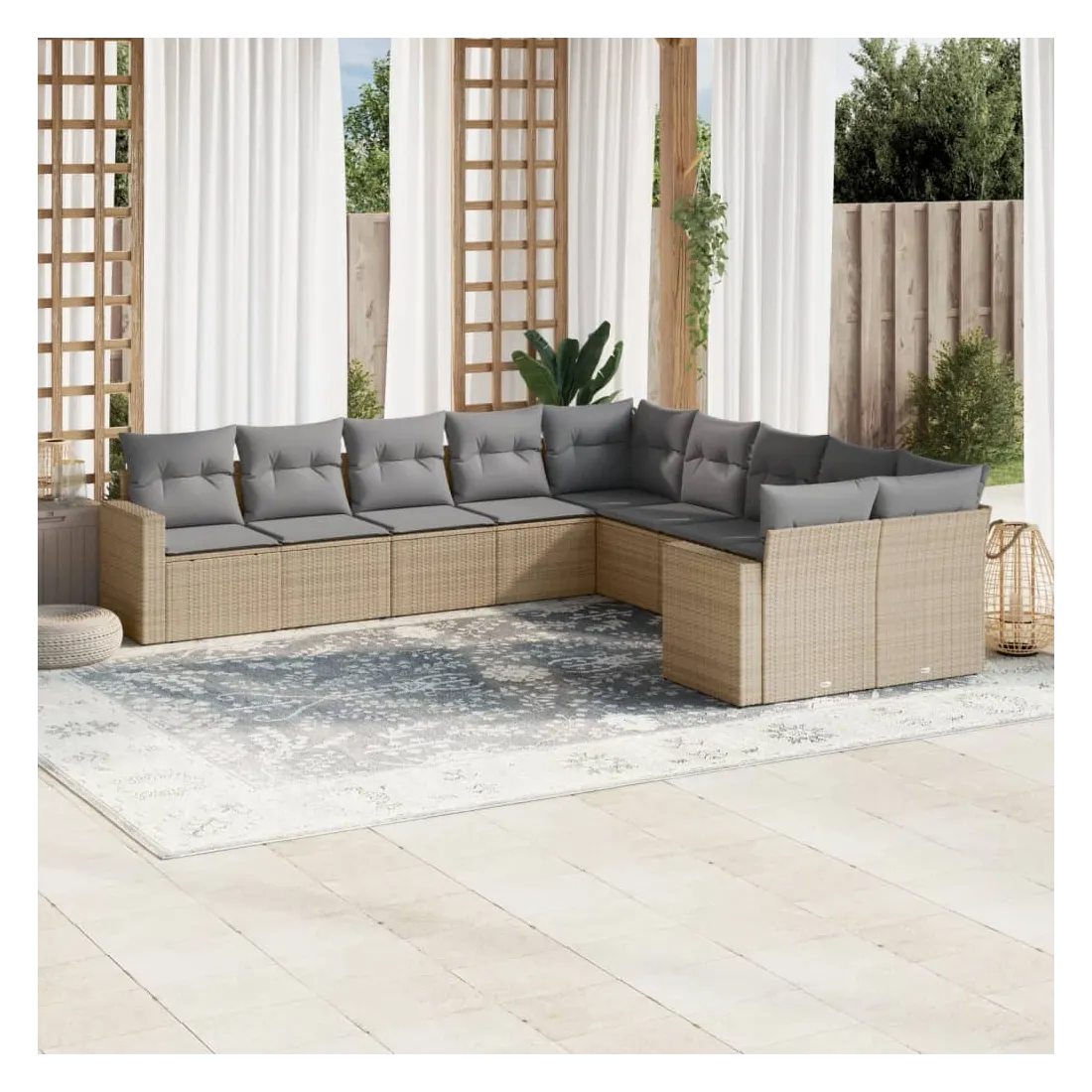 Cet ensemble de canapés de jardin est le complément parfait de votre arrière-cour, terrasse ou patio, offrant un espace confortable et accueillant pour discuter avec la famille et les amis ou simplement se détendre et profiter de l'extérieur. Matériau durable : la résine tressée, également connue sous le nom de poly rotin, est un matériau synthétique solide et nécessitant peu d'entretien qui ressemble au rotin naturel. Il est léger, facile à nettoyer et couramment utilisé pour les meubles d'extérieur en raison de sa durabilité et de ses propriétés de résistance aux intempéries.Expérience d'assise confortable : ce mobilier d'extérieur, doté de coussins épais, offre une expérience d'assise confortable.Housse amovible et lavable : ces coussins de siège sont dotés de housses amovibles pour un lavage et un entretien faciles.Conception modulaire : cet ensemble de meubles d'extérieur a une conception modulaire, ce qui le rend complètement flexible et facile à déplacer, afin que vous puissiez créer un agencement de meubles d'extérieur personnalisé. Bon à savoir :Pour que vos meubles d'extérieur restent beaux, nous vous recommandons de les protéger avec une housse imperméable.