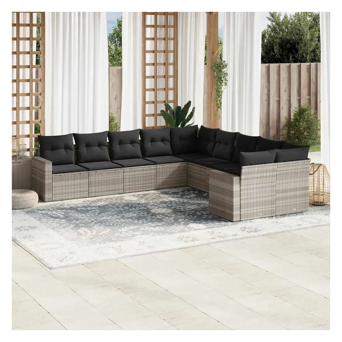 Salon de jardin avec coussins 10 pcs gris clair résine tressée