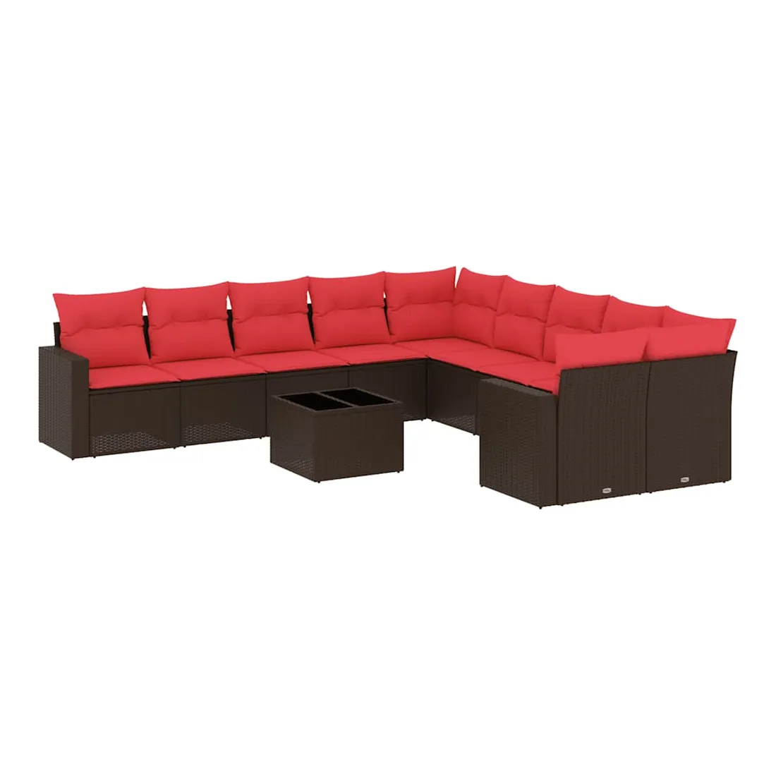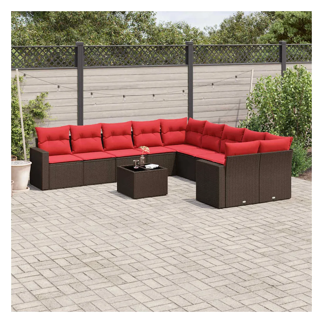 Salon de jardin et coussins 11 pcs marron résine tressée