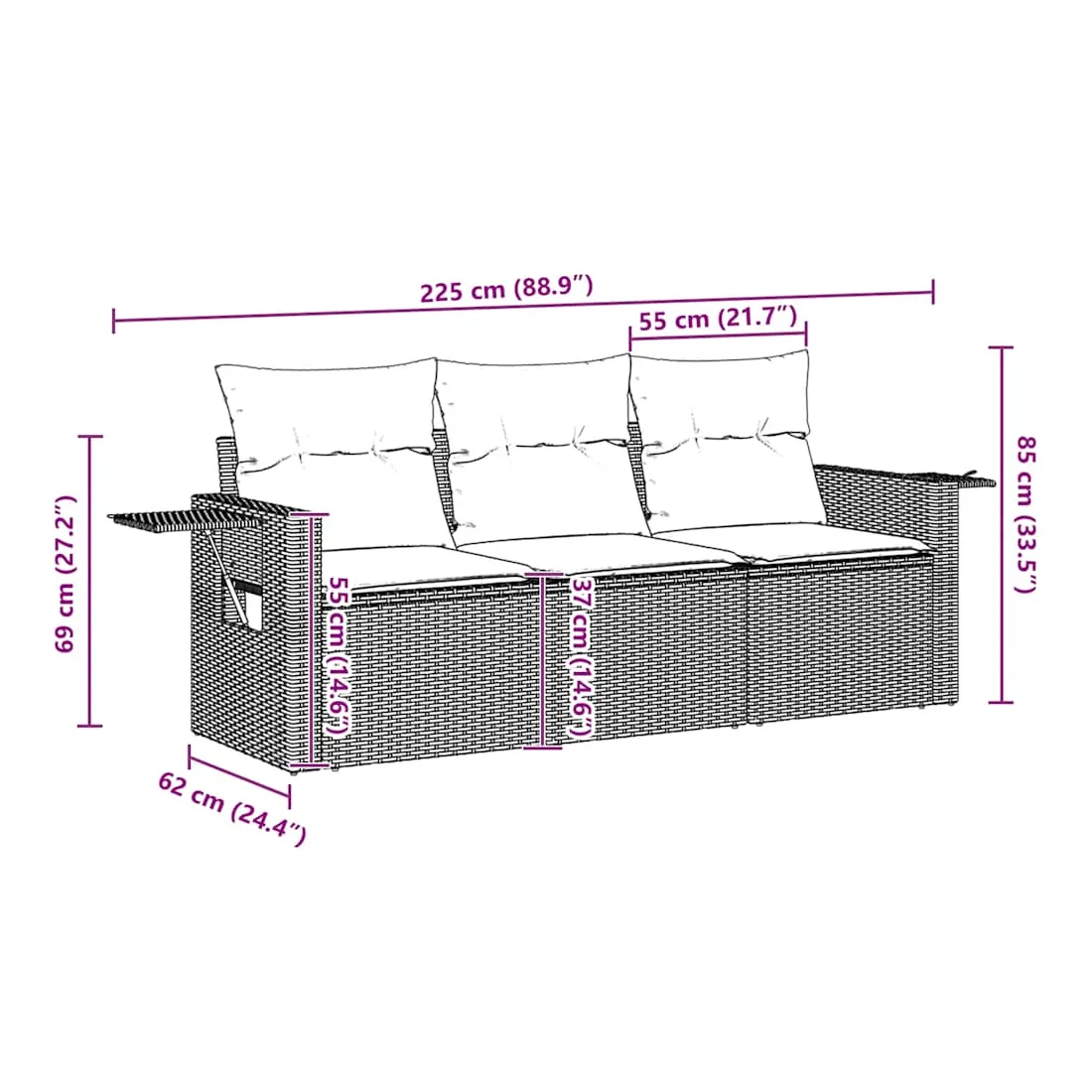 Cet ensemble de canapés de jardin est le complément parfait de votre arrière-cour, terrasse ou patio, offrant un espace confortable et accueillant pour discuter avec la famille et les amis ou simplement se détendre et profiter de l'extérieur. Matériau durable : la résine tressée, également connue sous le nom de poly rotin, est un matériau synthétique solide et nécessitant peu d'entretien qui ressemble au rotin naturel. Il est léger, facile à nettoyer et couramment utilisé pour les meubles d'extérieur en raison de sa durabilité et de ses propriétés de résistance aux intempéries. Table d'appoint pratique : ce mobilier d'extérieur comprend des tables d'appoint pliables avec un ressort à gaz sur les accoudoirs, offrant des endroits pratiques pour garder vos essentiels à portée de main. Expérience d'assise confortable : ce mobilier d'extérieur, doté de coussins épais, offre une expérience d'assise confortable. Housse amovible et lavable : ces coussins de siège sont dotés de housses amovibles pour un lavage et un entretien faciles.Conception modulaire : cet ensemble de meubles d'extérieur a une conception modulaire, ce qui le rend complètement flexible et facile à déplacer, afin que vous puissiez créer un agencement de meubles d'extérieur personnalisé. Bon à savoir :Pour que vos meubles d'extérieur restent beaux, nous vous recommandons de les protéger avec une housse imperméable.