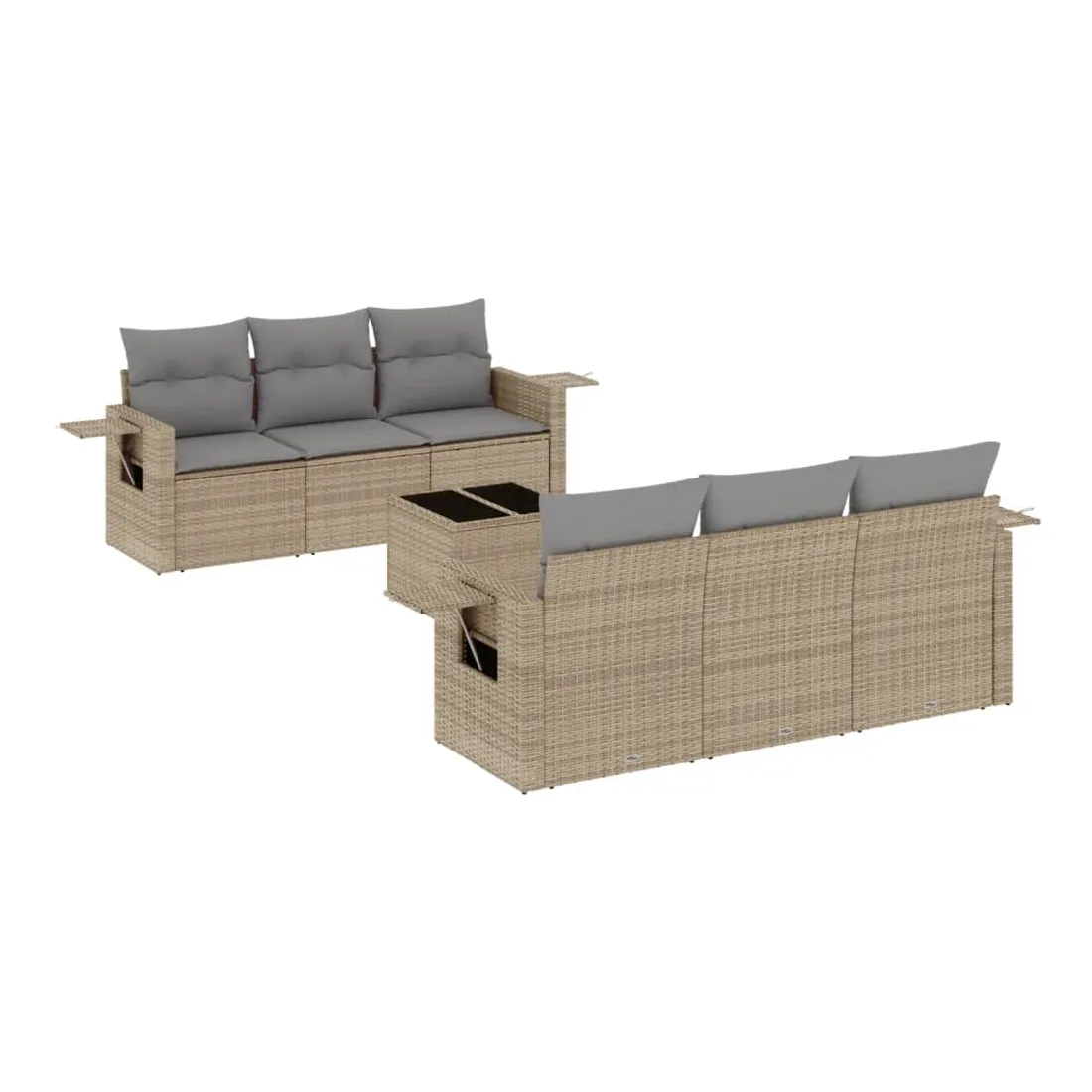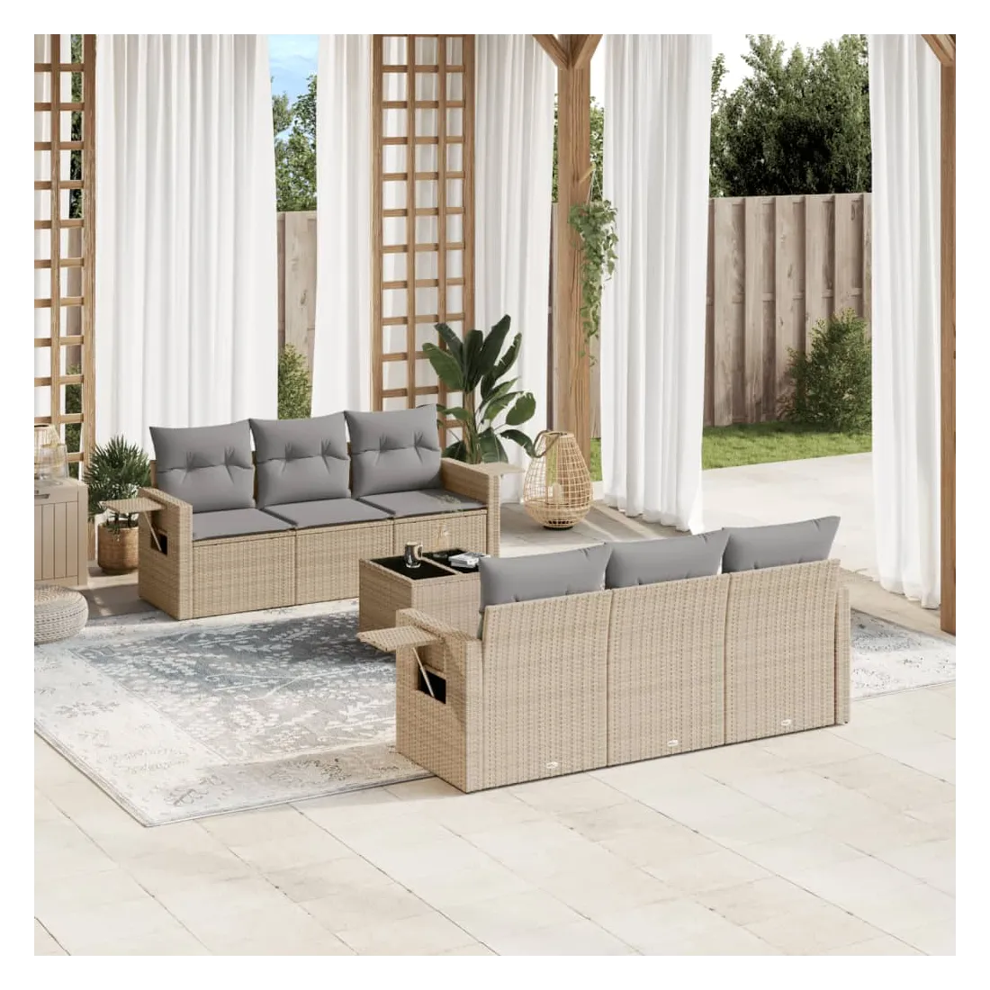 Cet ensemble de canapés de jardin est le complément parfait de votre arrière-cour, terrasse ou patio, offrant un espace confortable et accueillant pour discuter avec la famille et les amis ou simplement se détendre et profiter de l'extérieur. Matériau durable : la résine tressée, également connue sous le nom de poly rotin, est un matériau synthétique solide et nécessitant peu d'entretien qui ressemble au rotin naturel. Il est léger, facile à nettoyer et couramment utilisé pour les meubles d'extérieur en raison de sa durabilité et de ses propriétés de résistance aux intempéries.Dessus en verre : le dessus de la table d'extérieur est fabriqué en verre trempé solide et durable, ce qui le rend facile à nettoyer avec un chiffon humide et ajoute une touche d'élégance à votre espace extérieur. Table d'appoint pratique : ce mobilier d'extérieur comprend des tables d'appoint pliables avec un ressort à gaz sur les accoudoirs, offrant des endroits pratiques pour garder vos essentiels à portée de main. Expérience d'assise confortable : ce mobilier d'extérieur, doté de coussins épais, offre une expérience d'assise confortable.Conception modulaire : cet ensemble de meubles d'extérieur a une conception modulaire, ce qui le rend complètement flexible et facile à déplacer, afin que vous puissiez créer un agencement de meubles d'extérieur personnalisé. Bon à savoir :Pour que vos meubles d'extérieur restent beaux, nous vous recommandons de les protéger avec une housse imperméable.