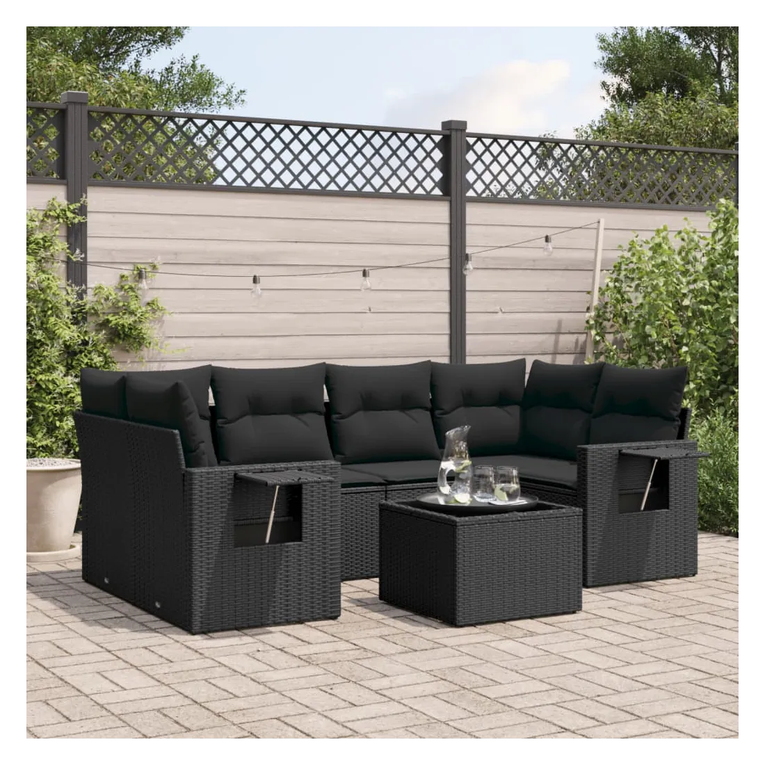 Cet ensemble de canapés de jardin est le complément parfait de votre arrière-cour, terrasse ou patio, offrant un espace confortable et accueillant pour discuter avec la famille et les amis ou simplement se détendre et profiter de l'extérieur. Matériau durable : la résine tressée, également connue sous le nom de poly rotin, est un matériau synthétique solide et nécessitant peu d'entretien qui ressemble au rotin naturel. Il est léger, facile à nettoyer et couramment utilisé pour les meubles d'extérieur en raison de sa durabilité et de ses propriétés de résistance aux intempéries.Dessus en verre : le dessus de la table d'extérieur est fabriqué en verre trempé solide et durable, ce qui le rend facile à nettoyer avec un chiffon humide et ajoute une touche d'élégance à votre espace extérieur. Table d'appoint pratique : ce mobilier d'extérieur comprend des tables d'appoint pliables avec un ressort à gaz sur les accoudoirs, offrant des endroits pratiques pour garder vos essentiels à portée de main. Expérience d'assise confortable : ce mobilier d'extérieur, doté de coussins épais, offre une expérience d'assise confortable.Conception modulaire : cet ensemble de meubles d'extérieur a une conception modulaire, ce qui le rend complètement flexible et facile à déplacer, afin que vous puissiez créer un agencement de meubles d'extérieur personnalisé. Bon à savoir :Pour que vos meubles d'extérieur restent beaux, nous vous recommandons de les protéger avec une housse imperméable.