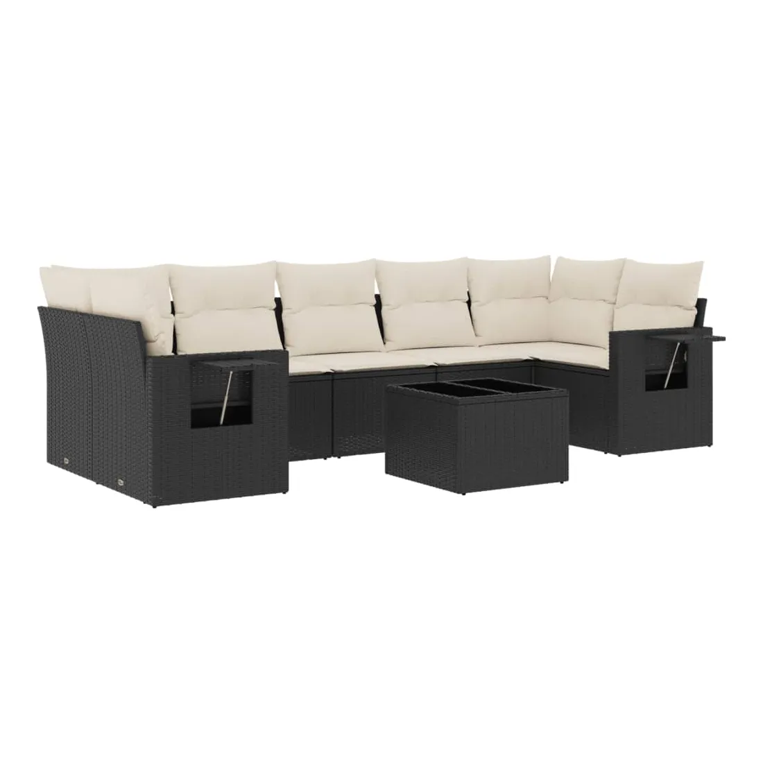 Cet ensemble de canapés de jardin est le complément parfait de votre arrière-cour, terrasse ou patio, offrant un espace confortable et accueillant pour discuter avec la famille et les amis ou simplement se détendre et profiter de l'extérieur. Matériau durable : la résine tressée, également connue sous le nom de poly rotin, est un matériau synthétique solide et nécessitant peu d'entretien qui ressemble au rotin naturel. Il est léger, facile à nettoyer et couramment utilisé pour les meubles d'extérieur en raison de sa durabilité et de ses propriétés de résistance aux intempéries.Dessus en verre : le dessus de la table d'extérieur est fabriqué en verre trempé solide et durable, ce qui le rend facile à nettoyer avec un chiffon humide et ajoute une touche d'élégance à votre espace extérieur. Table d'appoint pratique : ce mobilier d'extérieur comprend des tables d'appoint pliables avec un ressort à gaz sur les accoudoirs, offrant des endroits pratiques pour garder vos essentiels à portée de main. Expérience d'assise confortable : ce mobilier d'extérieur, doté de coussins épais, offre une expérience d'assise confortable.Conception modulaire : cet ensemble de meubles d'extérieur a une conception modulaire, ce qui le rend complètement flexible et facile à déplacer, afin que vous puissiez créer un agencement de meubles d'extérieur personnalisé. Bon à savoir :Pour que vos meubles d'extérieur restent beaux, nous vous recommandons de les protéger avec une housse imperméable.