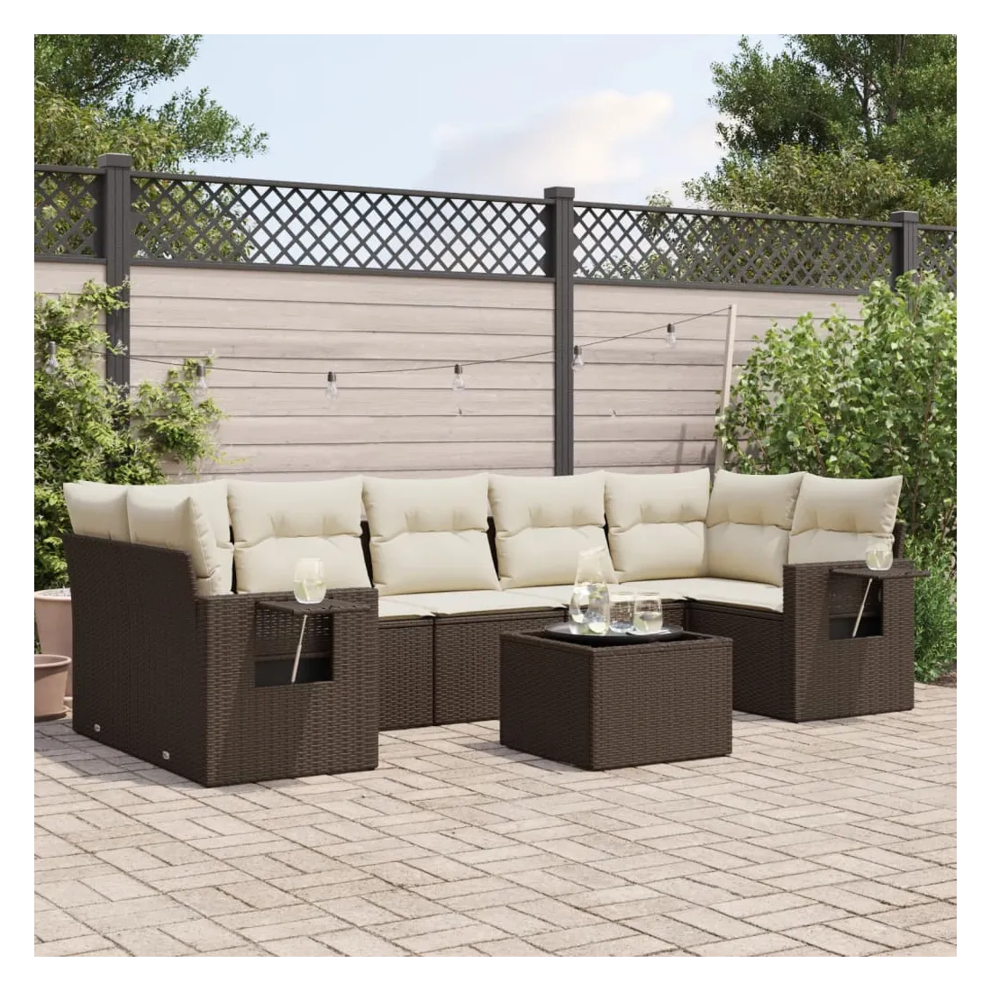 Cet ensemble de canapés de jardin est le complément parfait de votre arrière-cour, terrasse ou patio, offrant un espace confortable et accueillant pour discuter avec la famille et les amis ou simplement se détendre et profiter de l'extérieur. Matériau durable : la résine tressée, également connue sous le nom de poly rotin, est un matériau synthétique solide et nécessitant peu d'entretien qui ressemble au rotin naturel. Il est léger, facile à nettoyer et couramment utilisé pour les meubles d'extérieur en raison de sa durabilité et de ses propriétés de résistance aux intempéries.Dessus en verre : le dessus de la table d'extérieur est fabriqué en verre trempé solide et durable, ce qui le rend facile à nettoyer avec un chiffon humide et ajoute une touche d'élégance à votre espace extérieur. Table d'appoint pratique : ce mobilier d'extérieur comprend des tables d'appoint pliables avec un ressort à gaz sur les accoudoirs, offrant des endroits pratiques pour garder vos essentiels à portée de main. Expérience d'assise confortable : ce mobilier d'extérieur, doté de coussins épais, offre une expérience d'assise confortable.Conception modulaire : cet ensemble de meubles d'extérieur a une conception modulaire, ce qui le rend complètement flexible et facile à déplacer, afin que vous puissiez créer un agencement de meubles d'extérieur personnalisé. Bon à savoir :Pour que vos meubles d'extérieur restent beaux, nous vous recommandons de les protéger avec une housse imperméable.